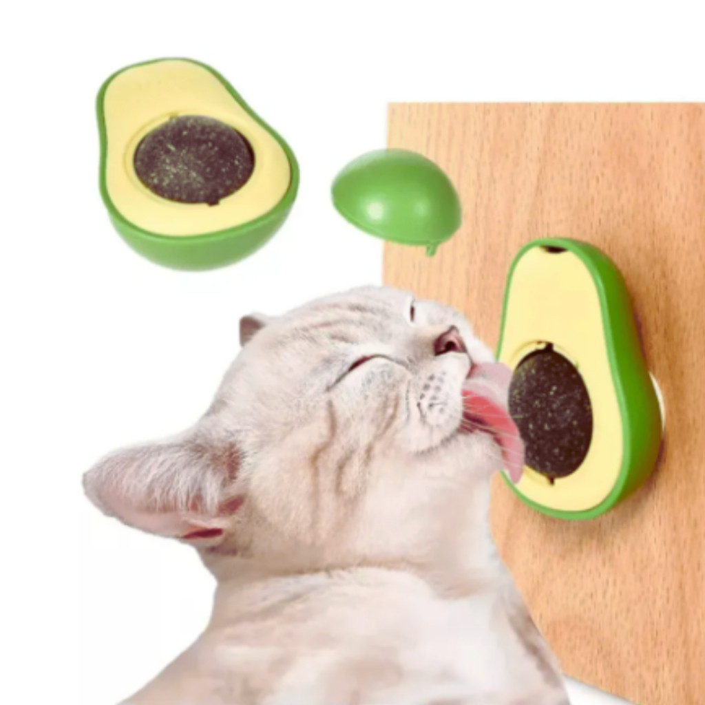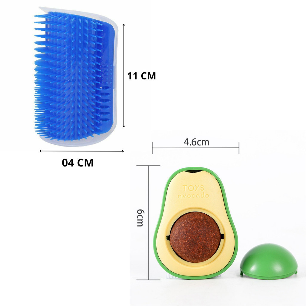 Kit Abacate Brinquedo Catnip Para Gatos + Escova Sortida Pet Para Tira Pelos e Massagem/ Coçador de Parede Para Pet -WYL