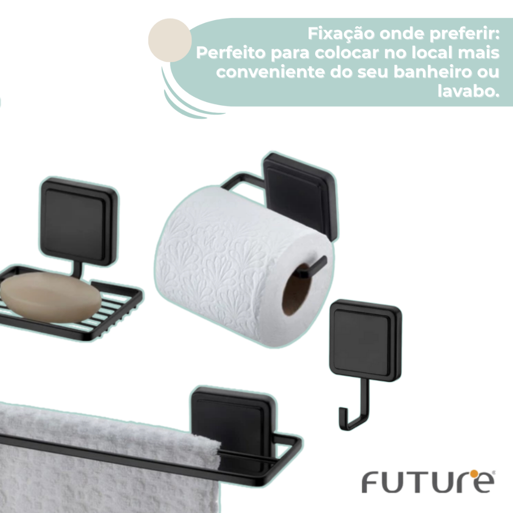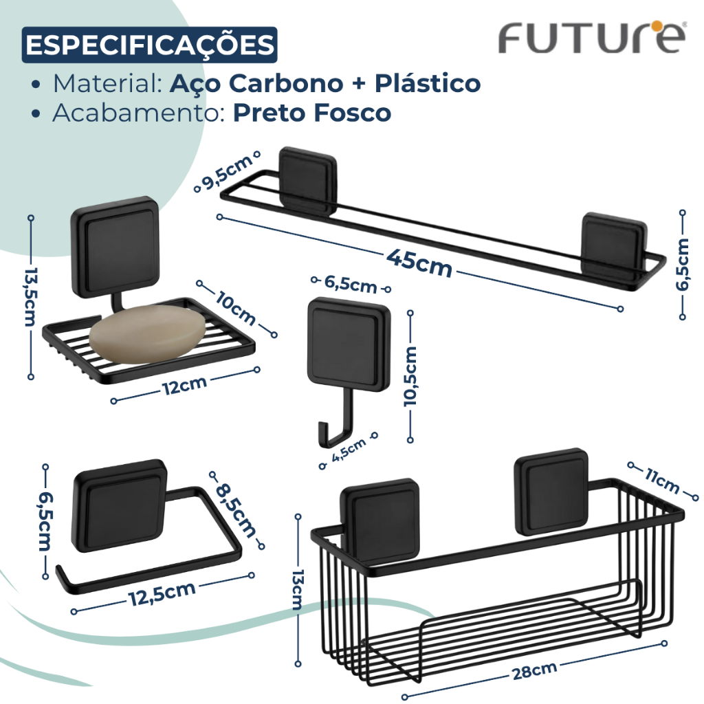 Kit Acessórios Banheiro Lavabo Preto Fosco 5 Peças Adesivo 3M Future