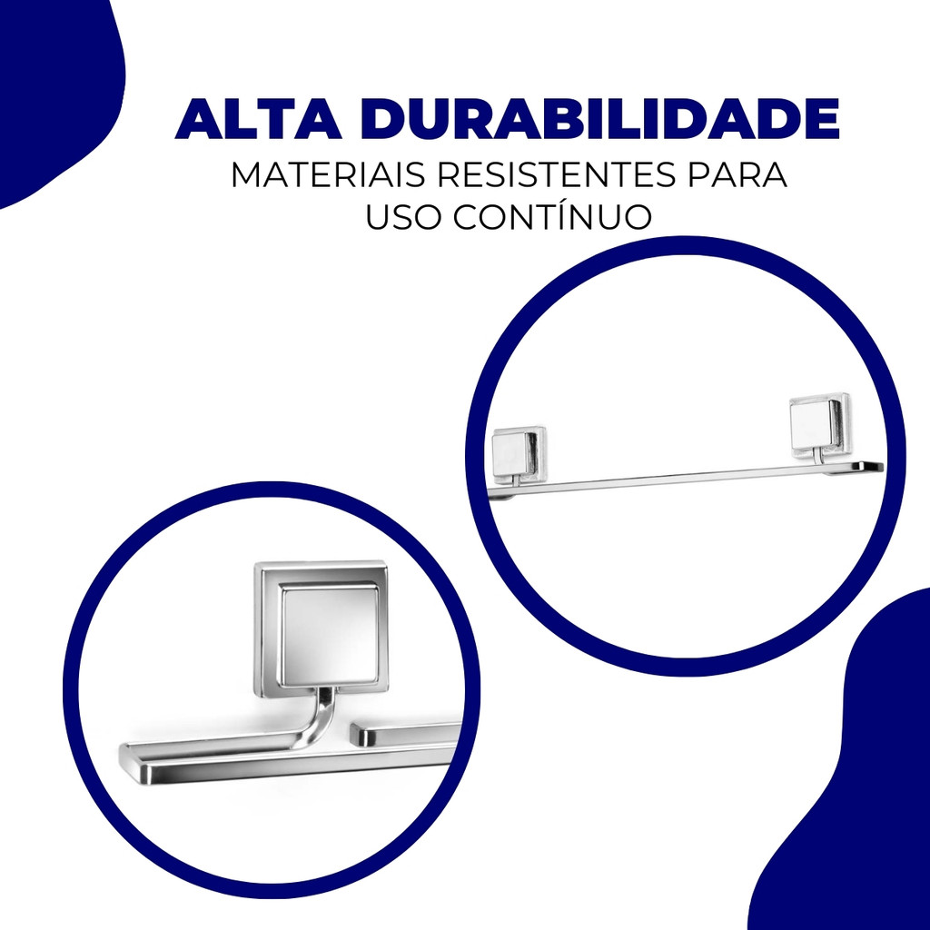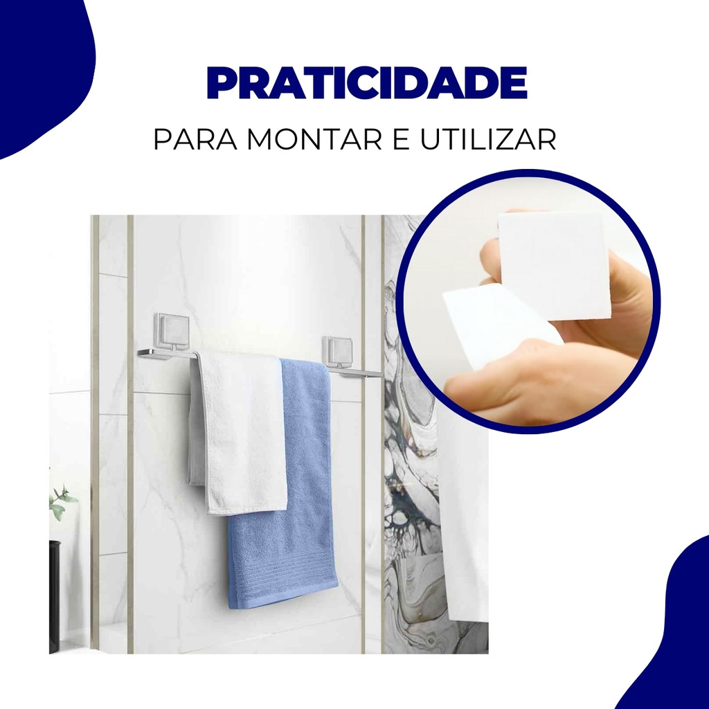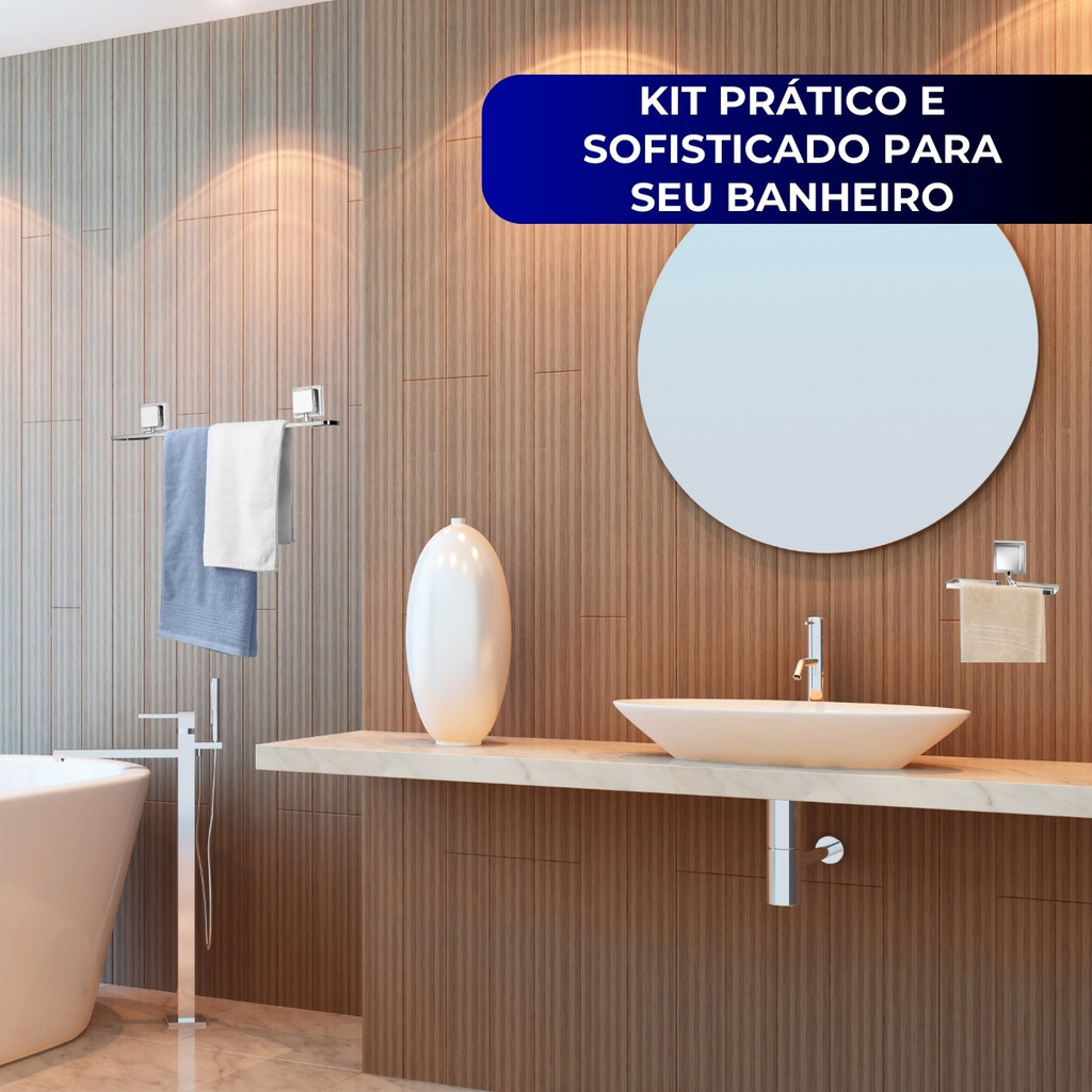 Kit Acessórios Banheiro Porta Toalha Rosto Banho Sem Furo Dupla Face 3M Cromado Arthi