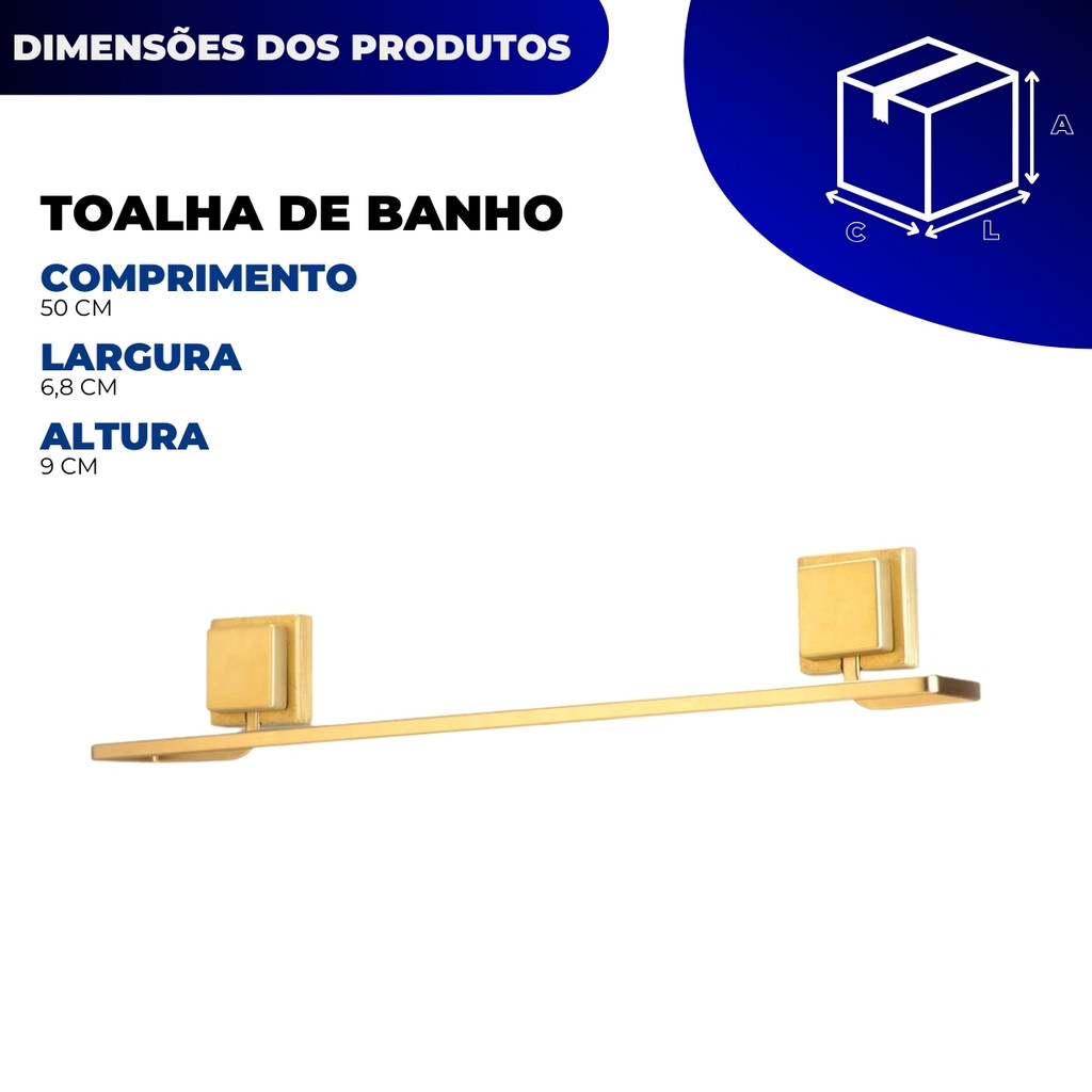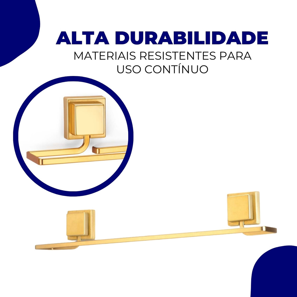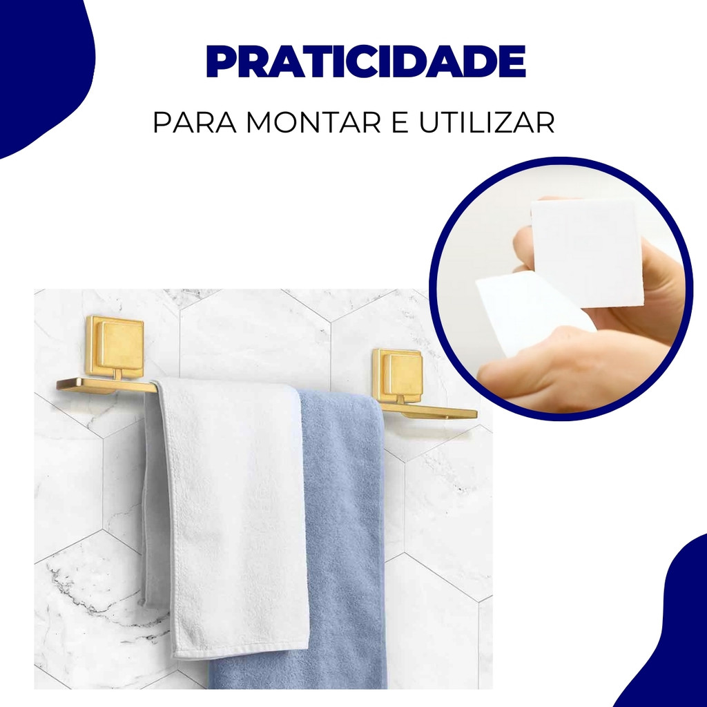 Kit Acessórios Banheiro Porta Toalha Rosto Banho Sem Furo Dupla Face 3M Dourado Arthi