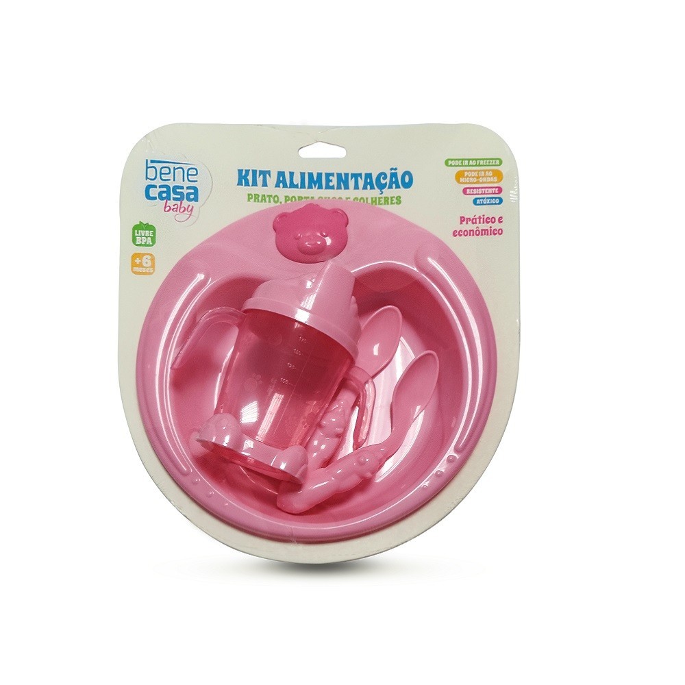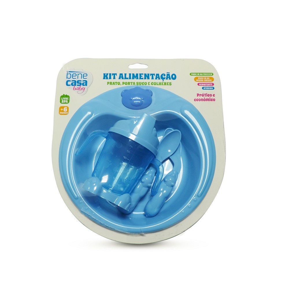 Kit Alimentação Infantil Prato Urso Porta Suco e Colheres