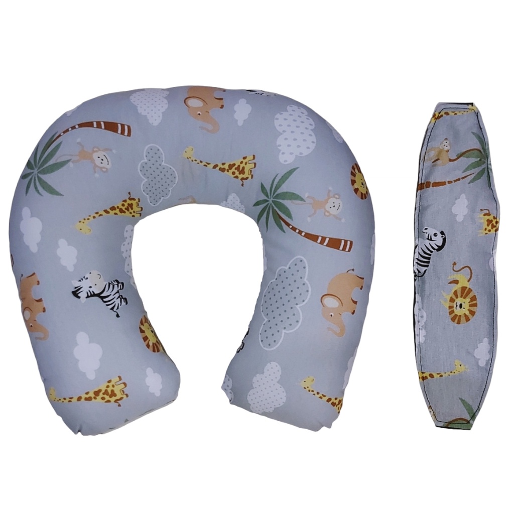 Kit Almofada de pescoço + Faixa Apoio Suporte Cabeça de Bebê Cadeirinha Carro