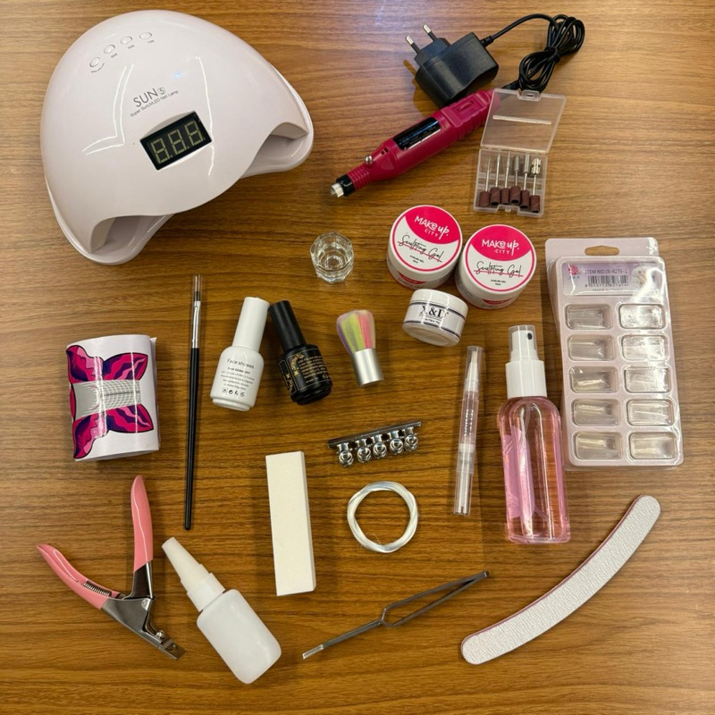 Kit Alongamento Unhas Completo Cabine UV LED Lixadeira Tips Gel Profissional Nº1