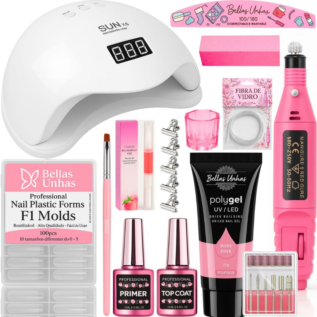 Kit Alongamento de Unha Polygel Poligel Cabine Estufa Lixadeira Elétrica Molde F1 - Envio Imediato