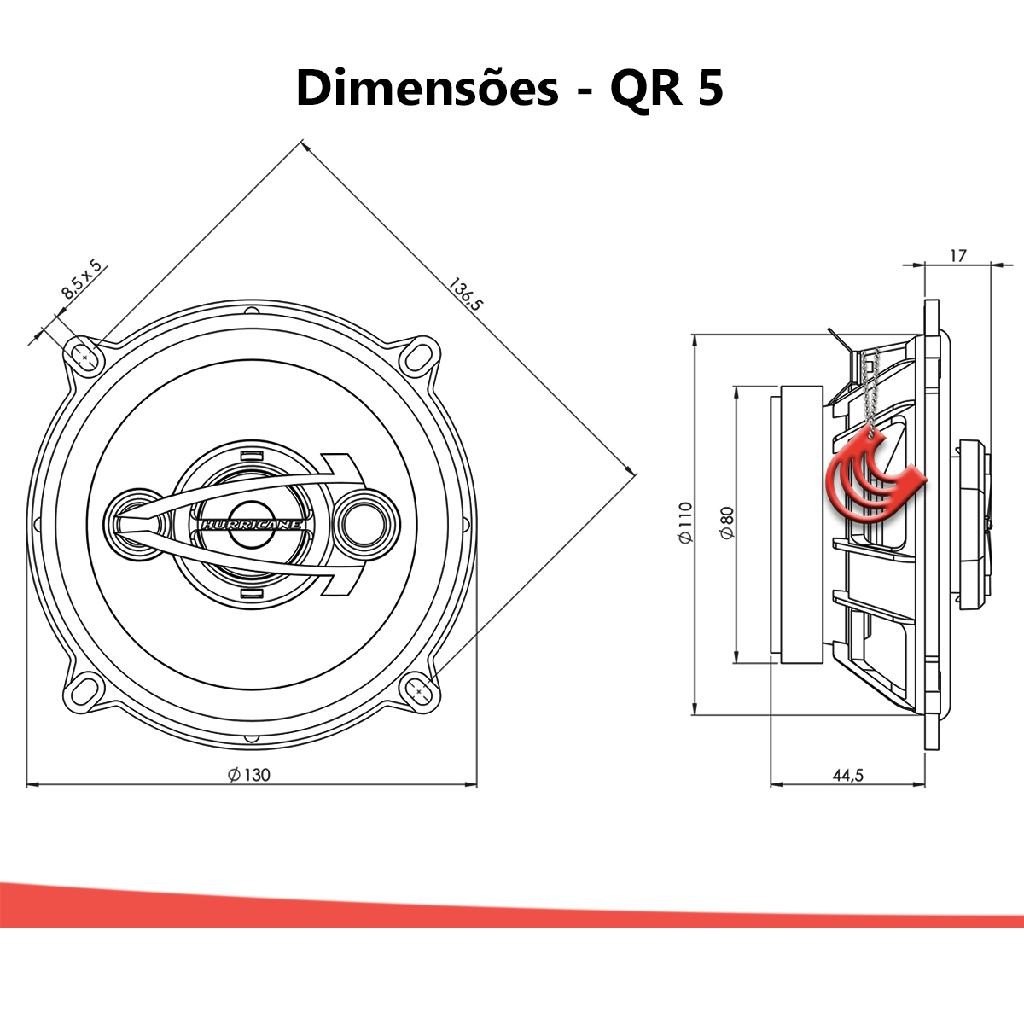 Kit Alto Falante 5 Polegadas 160w Som Bocas Medios Potência para Portas Quadriaxial Hurricane Qr5