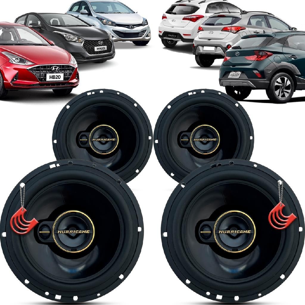 Kit Alto Falantes Dianteiros e Traseiros Hyundai HB20 HB20X 2012 até 2022 - Hurricane Aurum 480w