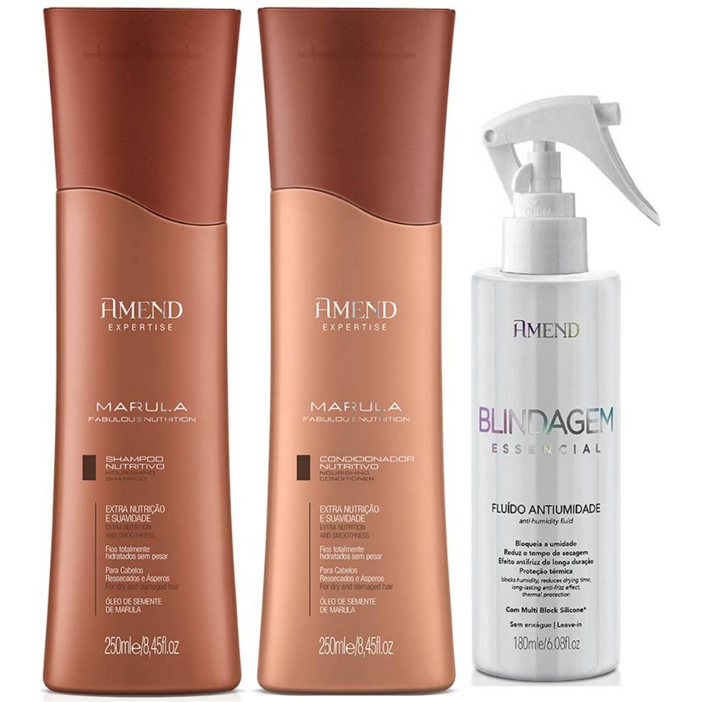 Kit Amend Marula Fabulos Com 2 Produtos + Fluido Blindagem Essencial 180ml Amend