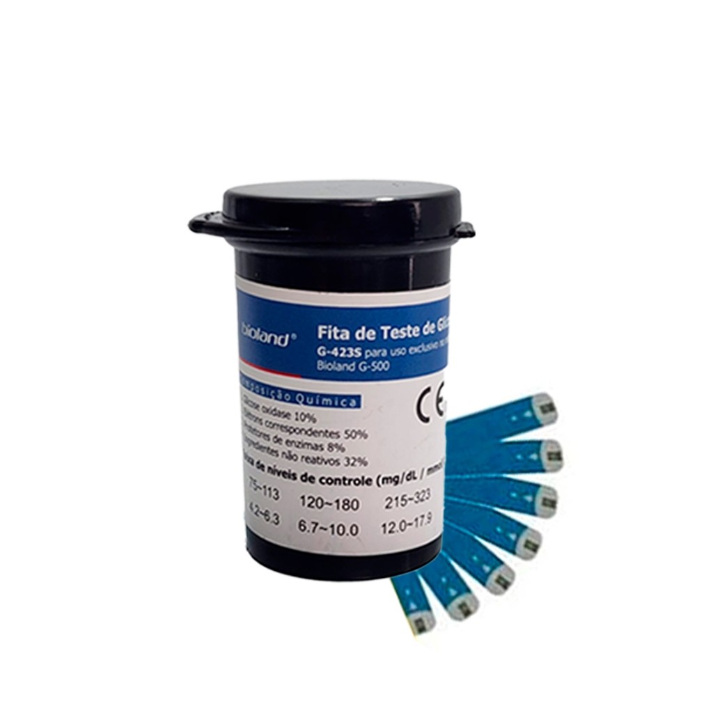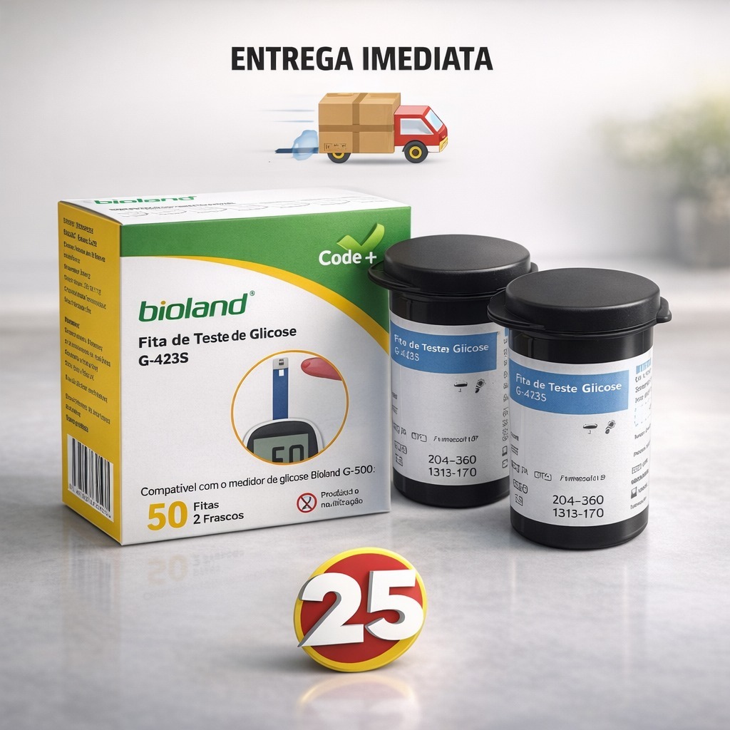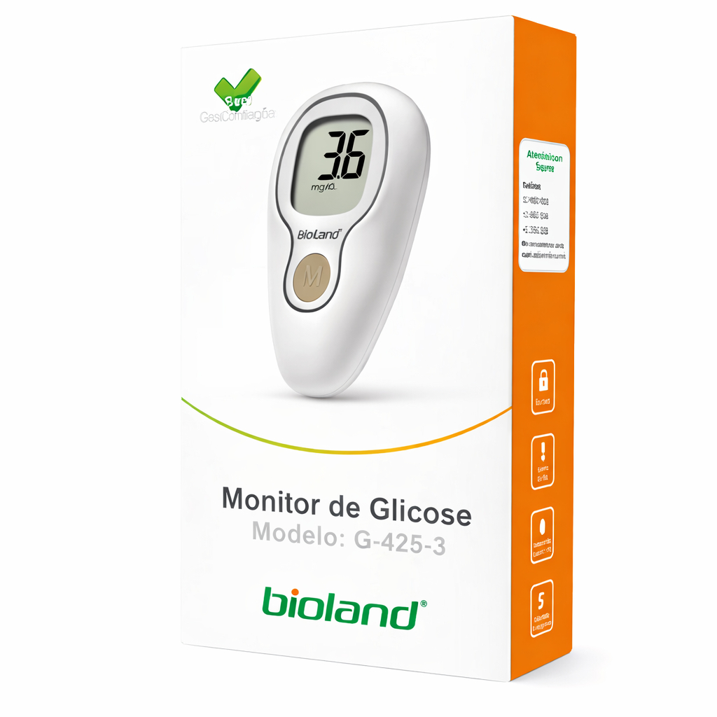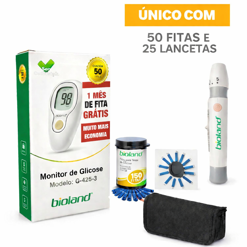 Kit Aparelho Glicose Bioland G425-3 50 Tiras + 25 Lancetas + Bolsa CAIXA + 2 Pilhas - Bioland