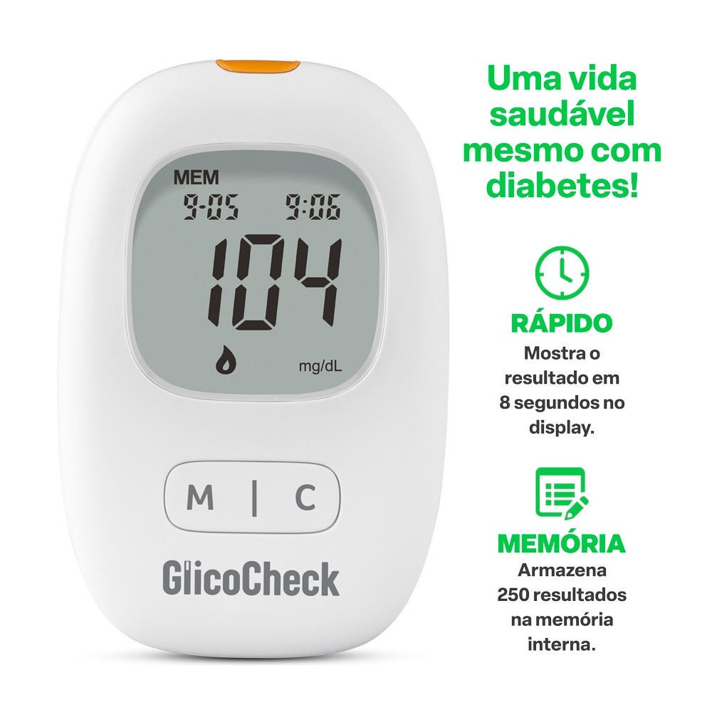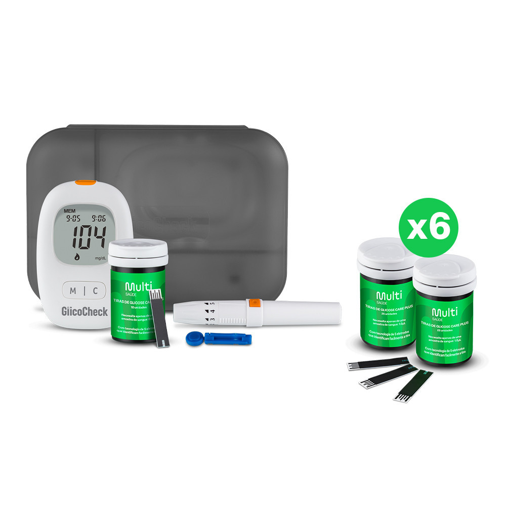 Kit Aparelho Medidor de Glicemia Glicocheck Care Plus + 310 tiras para Glicemia - HC487K2