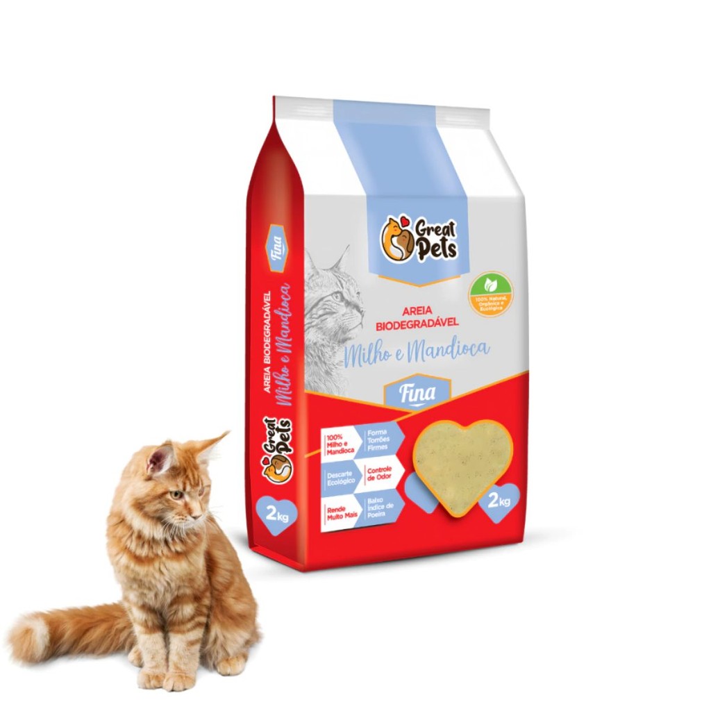 Kit Areia Higiênica Biodegradável Great Pets Gatos 4 Kg (2 pacotes de 2 kg) - Grãos Finos Fino Gato