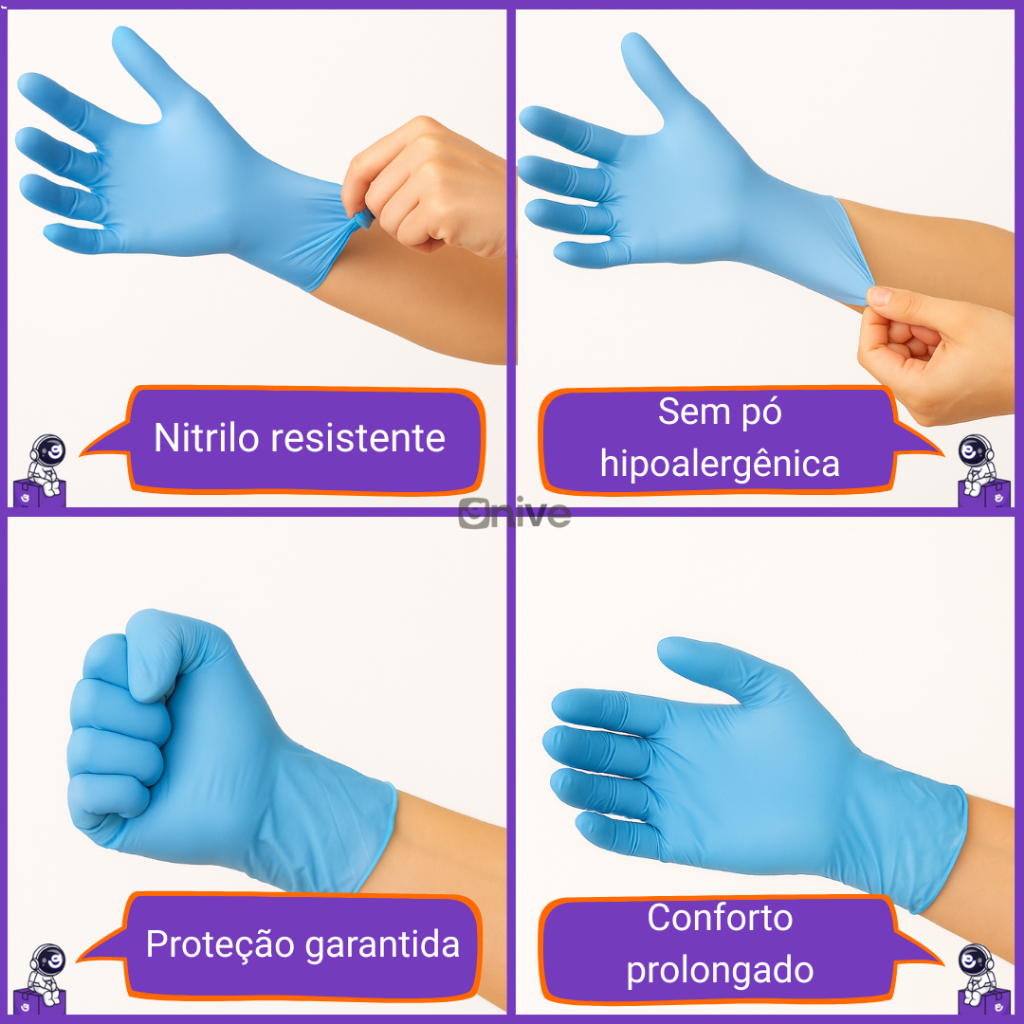 Kit Até 10 Caixas de Luva Nitrílica Azul Descartável Sem Pó Ambidestra P M G 1000 Unidades