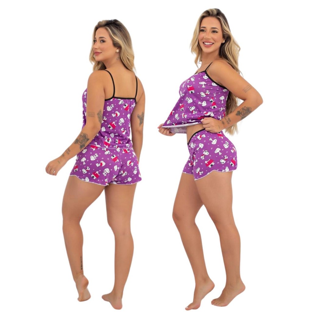 Kit Baby Doll Short de Dormir Pijama Verão Estampado Feminino Roupa Linha Noite Fresquinho
