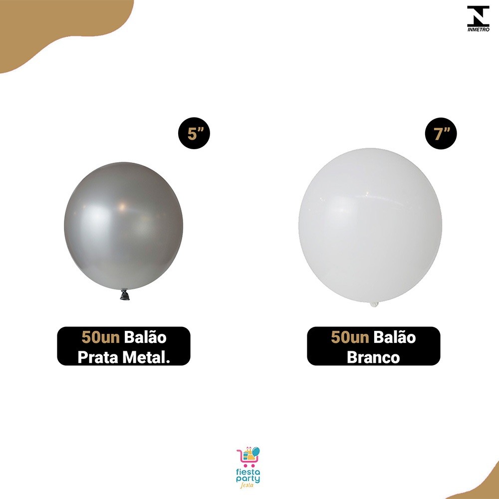 Kit Balões 100 un Branco e Prata Metalizado Balão Bexiga de Festa