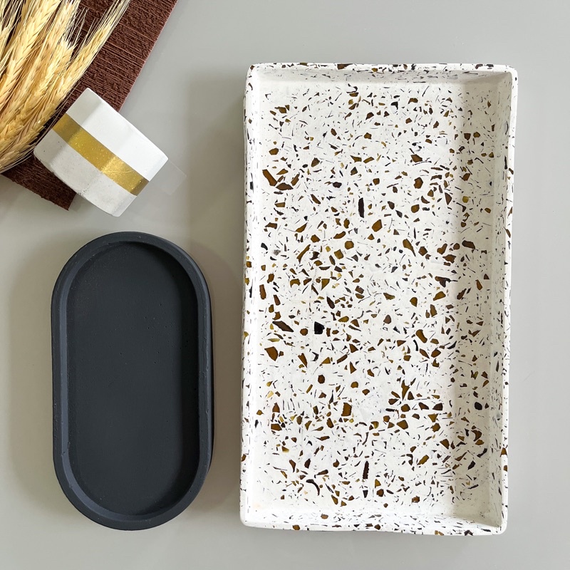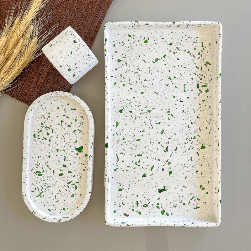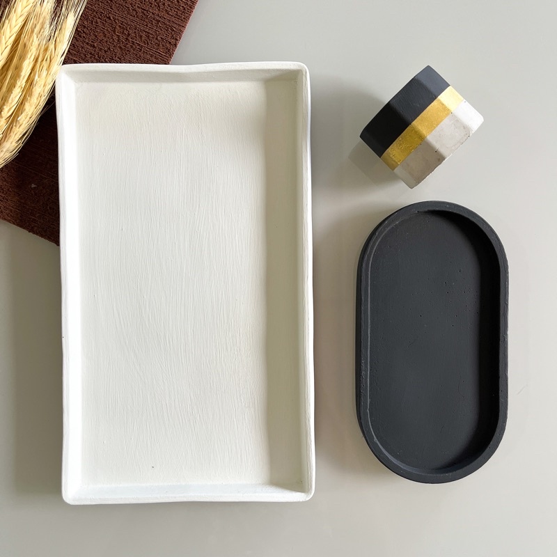 Kit Bandeja Retangular + Bandeja Oval + Vaso PP Decorativo para Sala Banheiro Escritorio