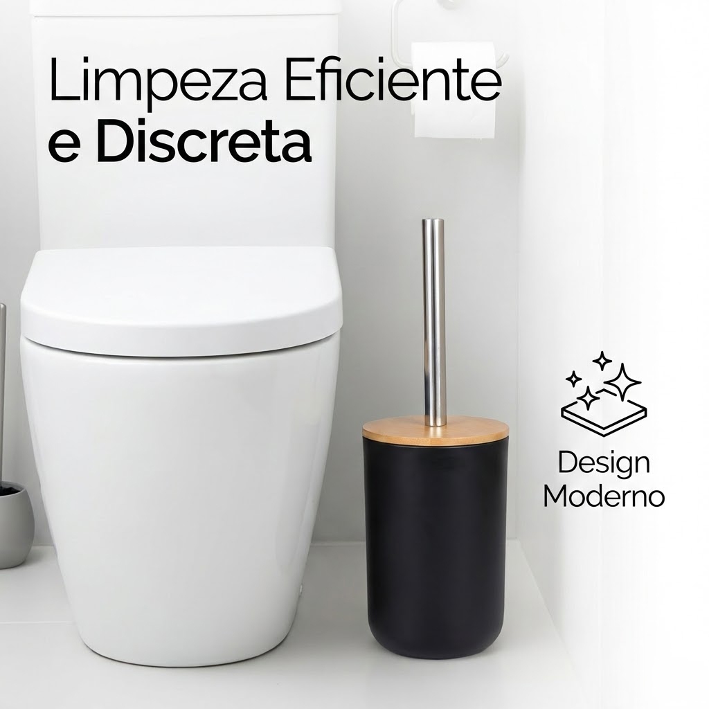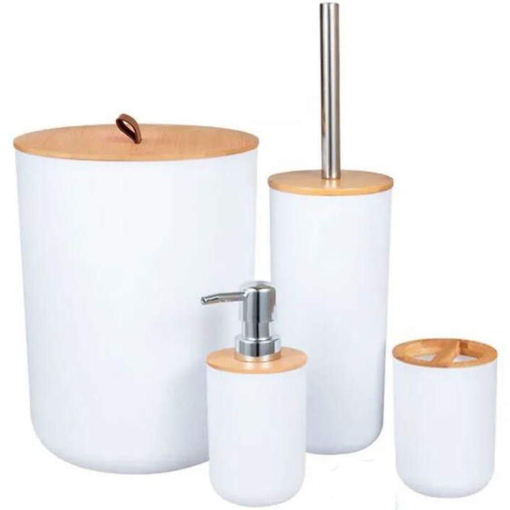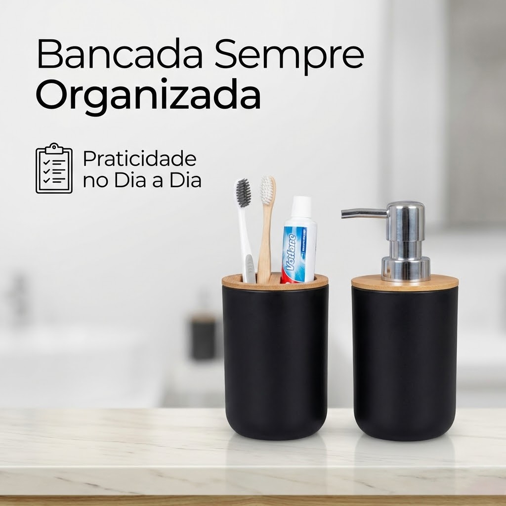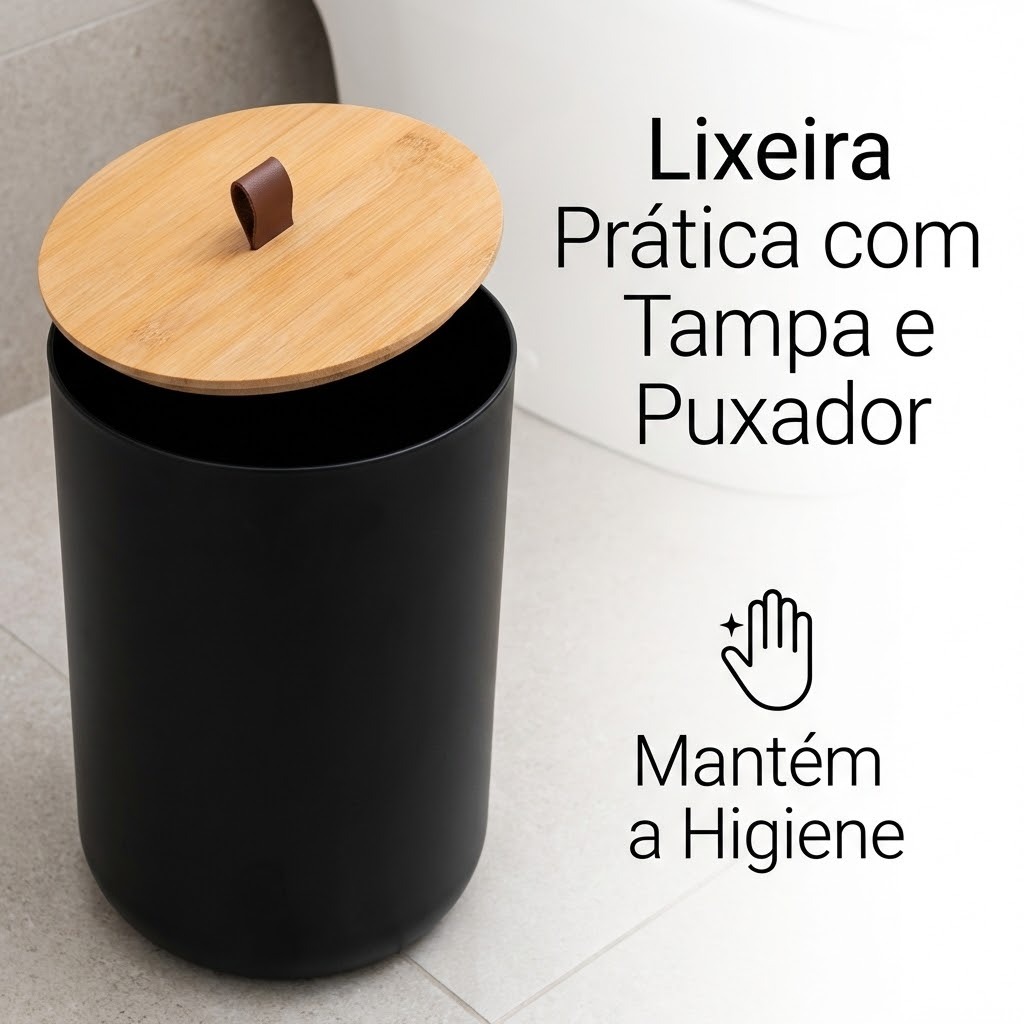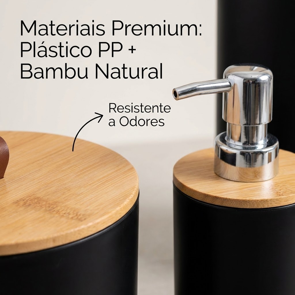 Kit Banheiro Conjunto Acessórios Lavabo Bambu 4 Peças Lixeira Dispenser Porta Escova Sanitária Tippi