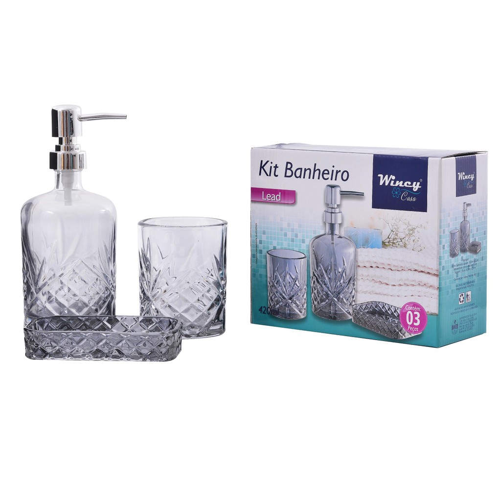 Kit Banheiro Led Plain Vidro 420ML 3 Peças