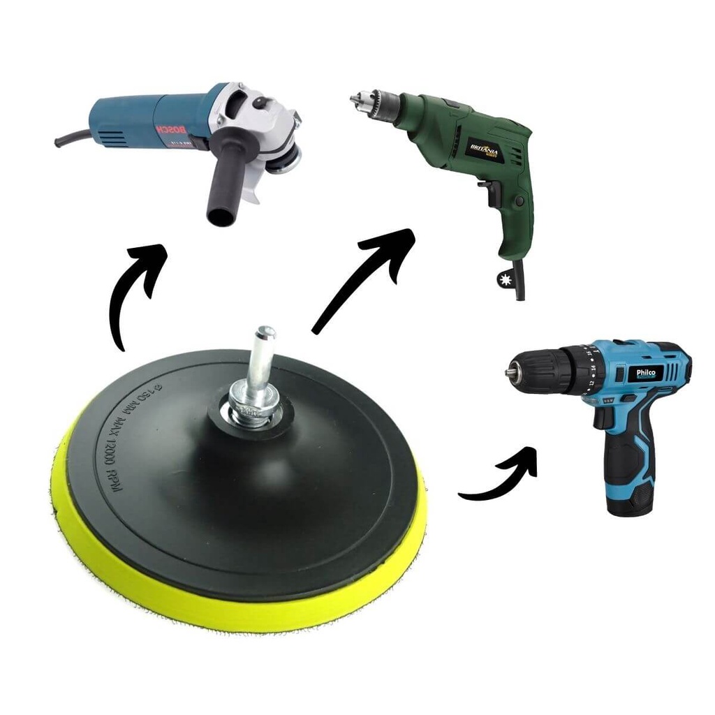 Kit Base Disco de Lixa + 10 Lixas 100 com Adaptador p/ Furadeira Lixadeira