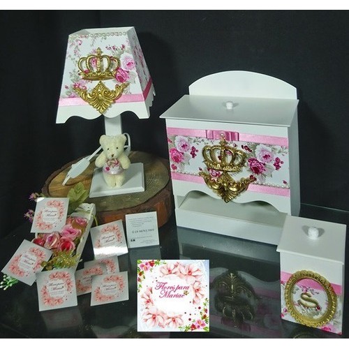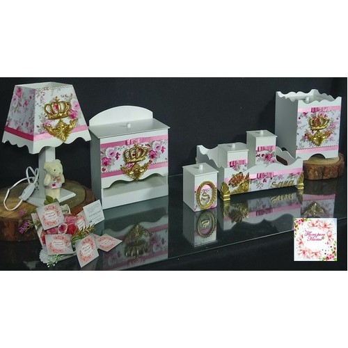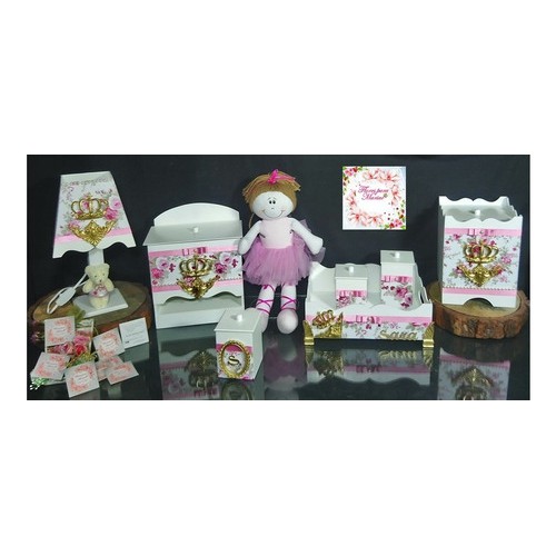 Kit Bebê 07 Pçs Luxo + branco Flores e coroa - personalizado com nome