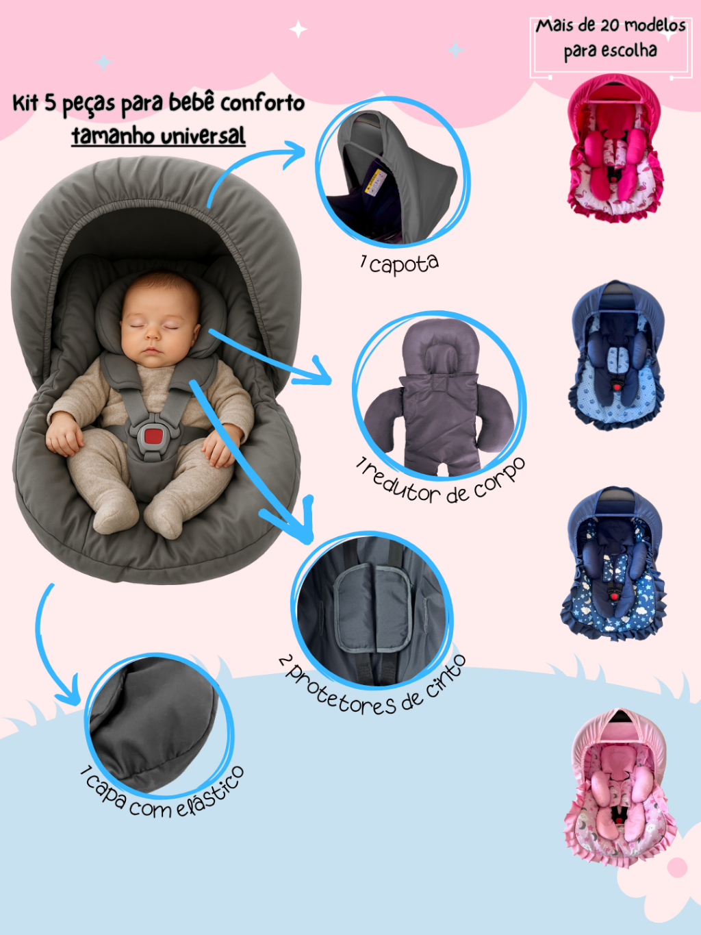 Kit Bebê Conforto 5 peças Tamanho Universal Capa Redutor Capota Protetor Cinto Galzerano Burigotto