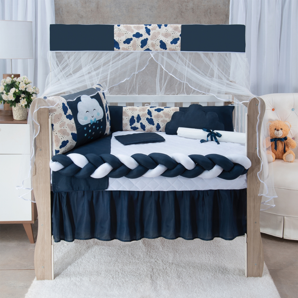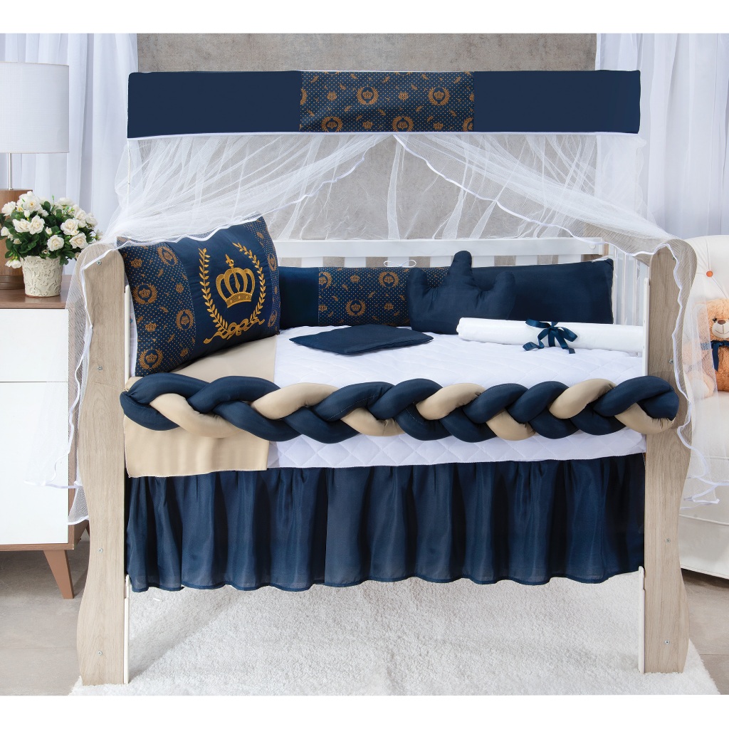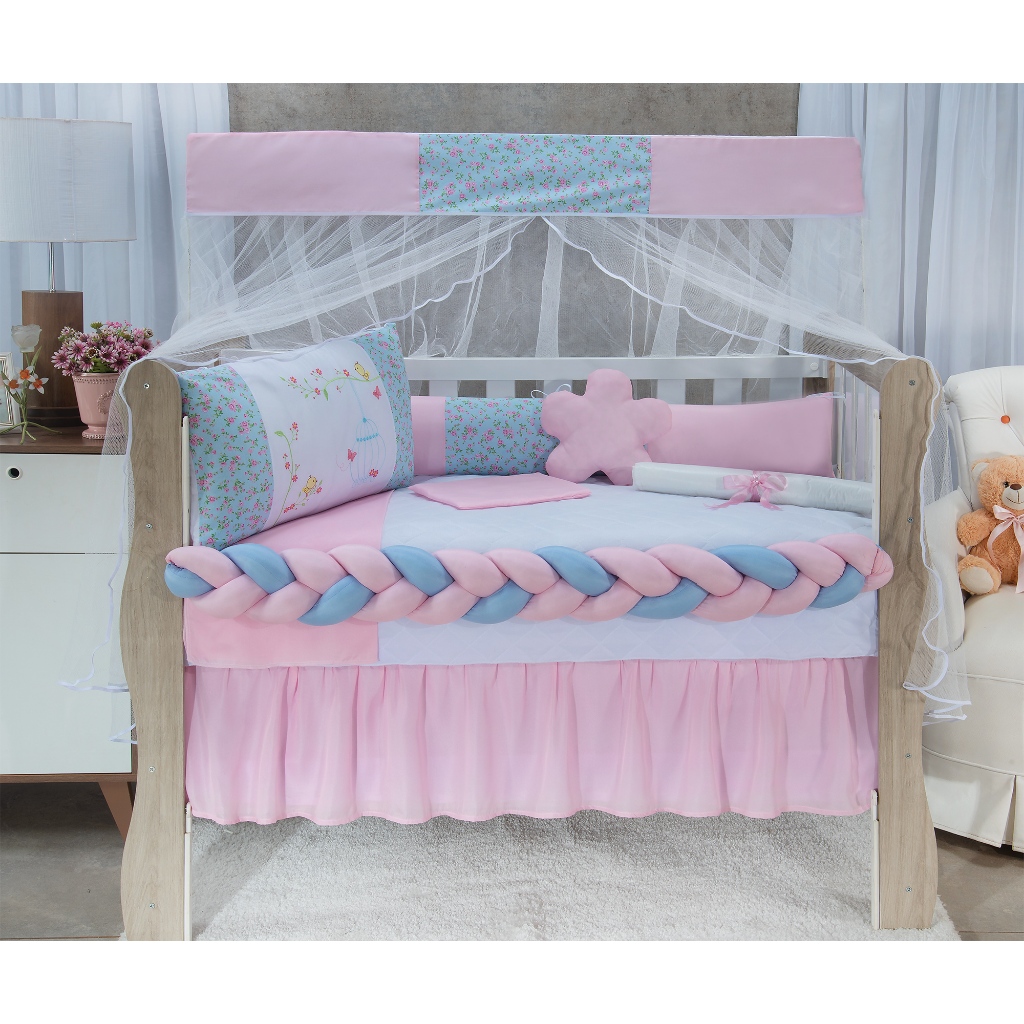 Kit Berço Americano Trança 11 Peças Coroa Caqui Rosa Para Bebê Menino e Menina
