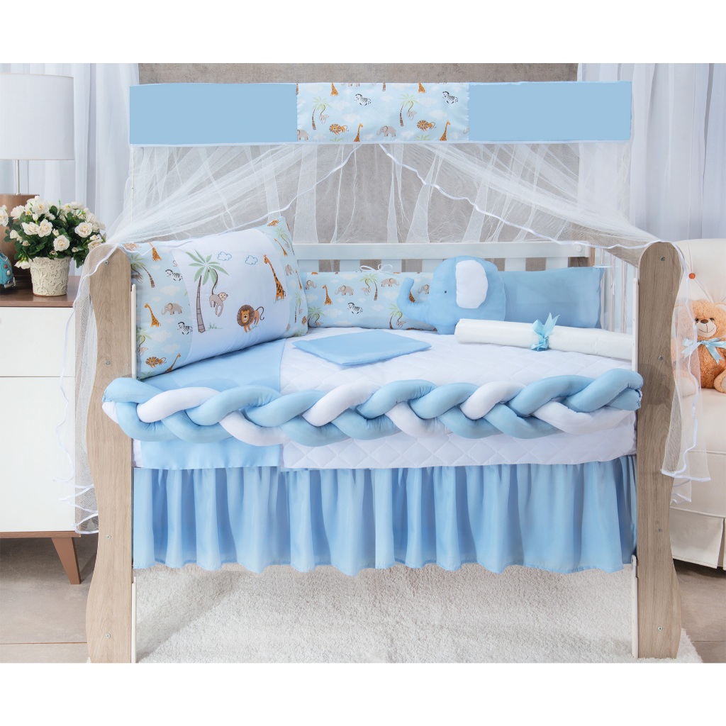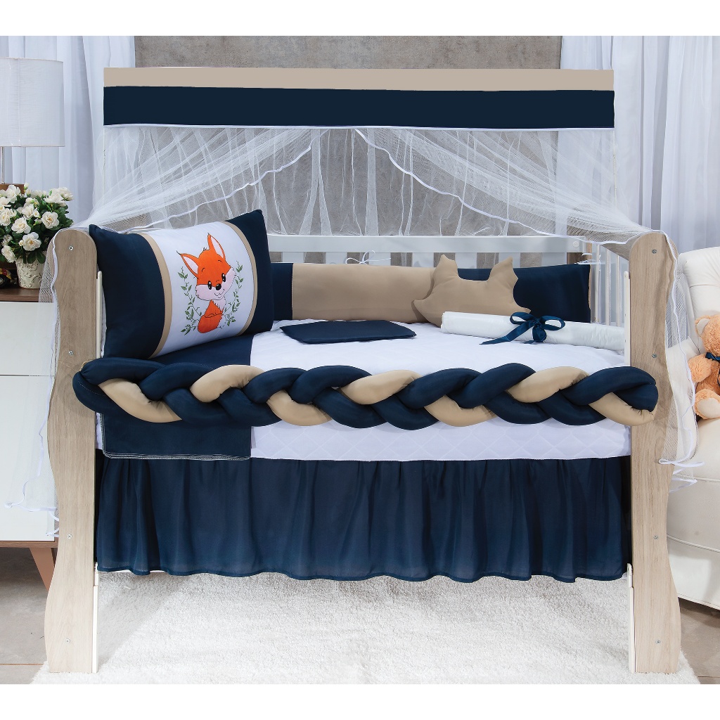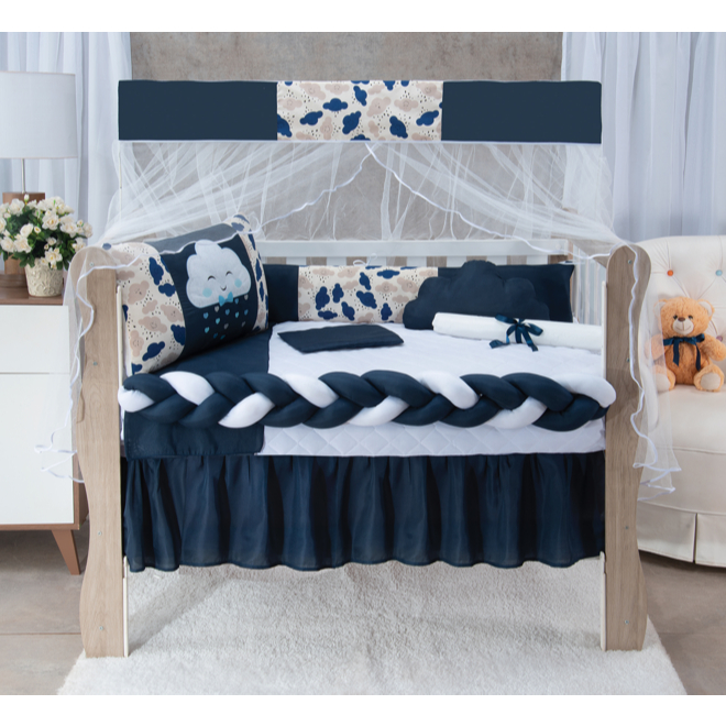 Kit Berço Americano Trança 11 Peças Urso Coroa Luxo Completo Para Bebê