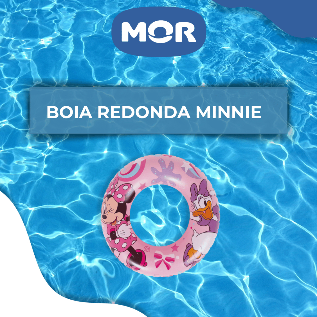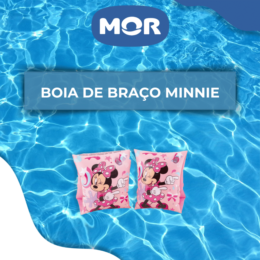 Kit Boia de Braço + Boia Redonda Minnie Disney Piscina Rosa Infantil Menina