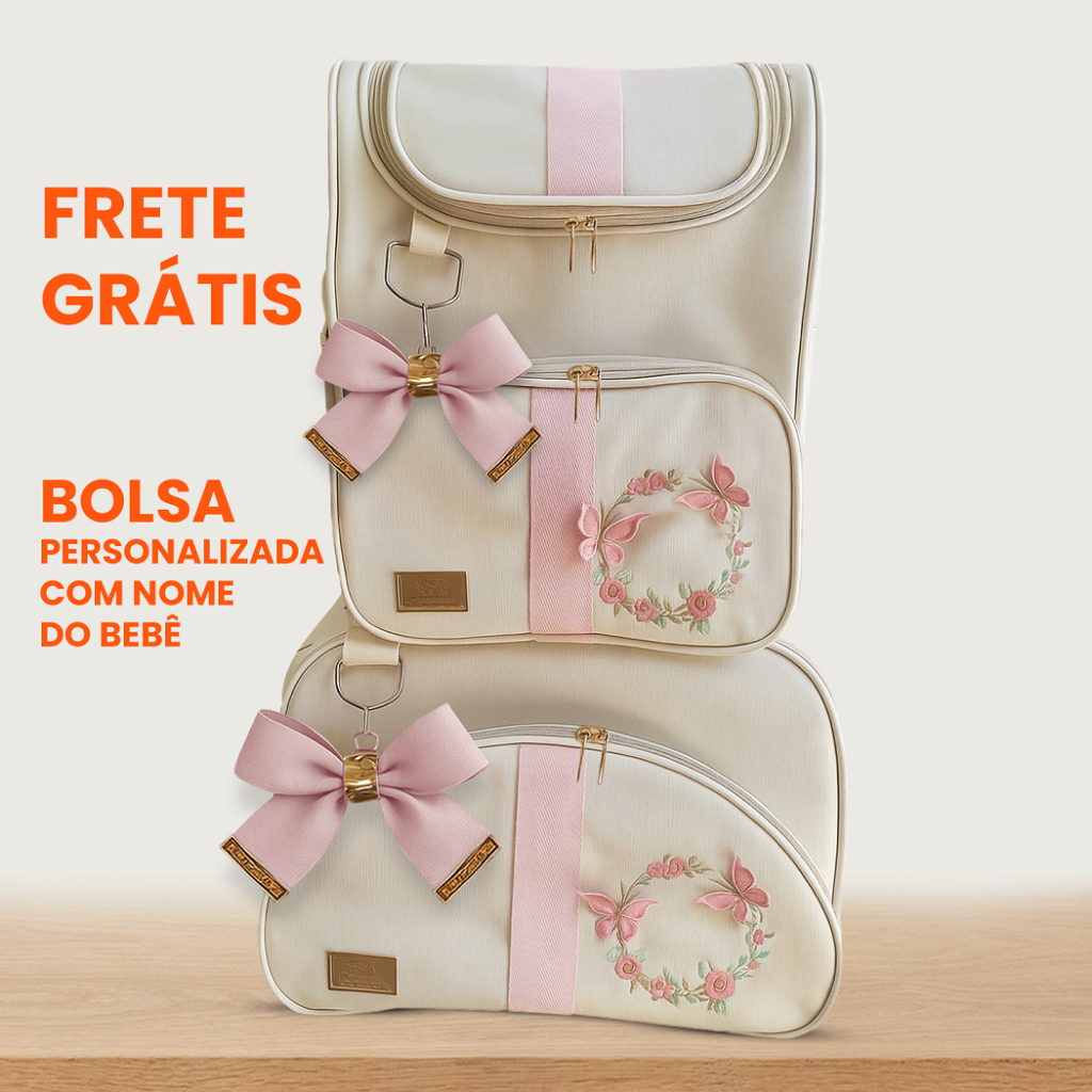 Kit Bolsa Maternidade 2 Peças Mala + Mochila Bordada Impermeável Personalizada Bebê