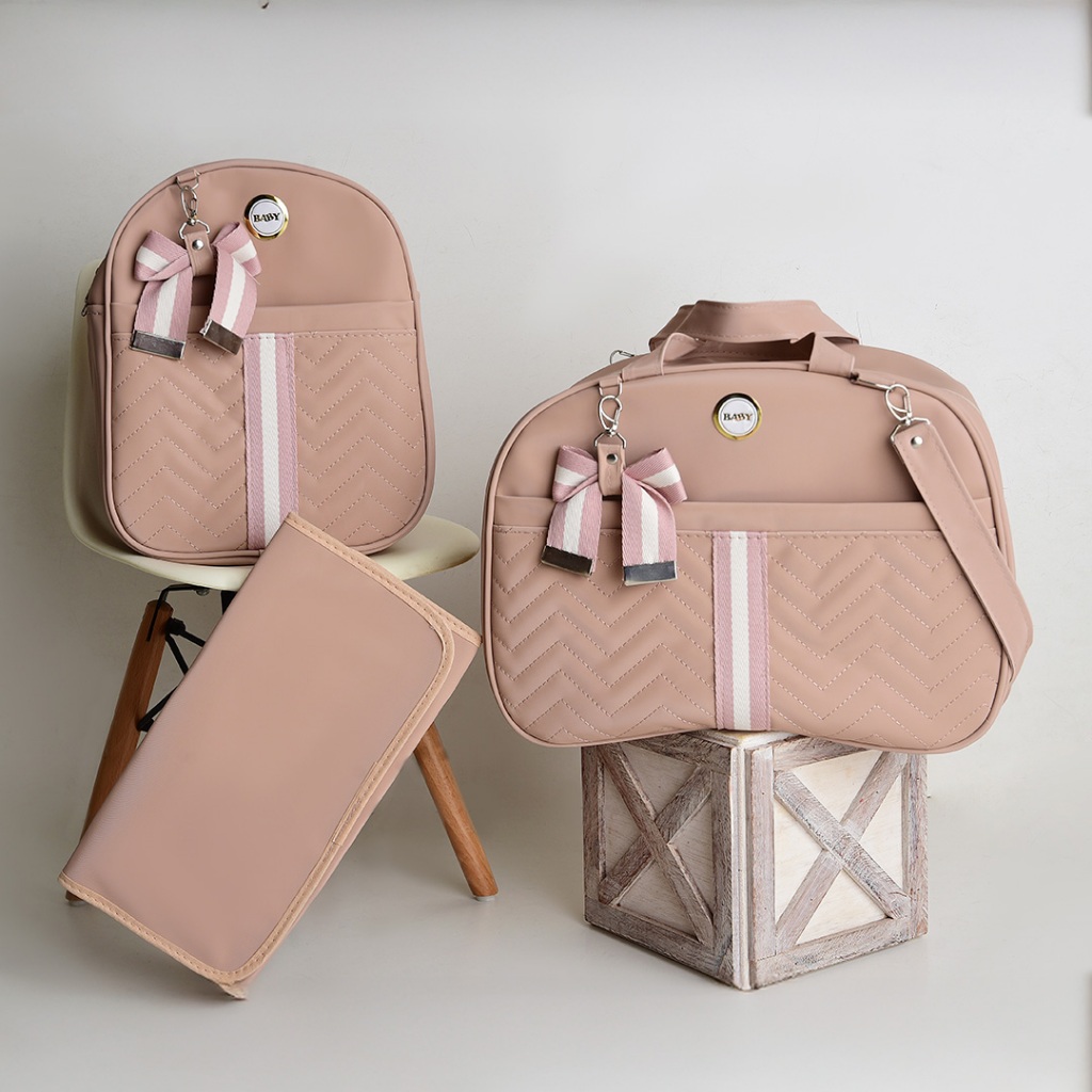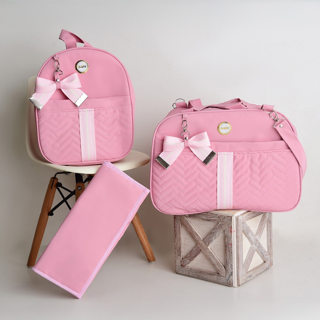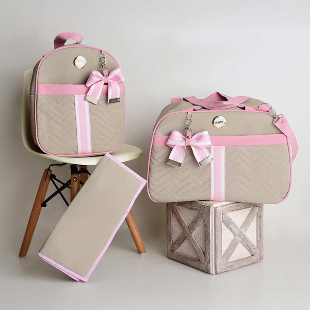 Kit Bolsa Maternidade Com Faixa e Laço 3 Peças Menina/Menino BUBBICO
