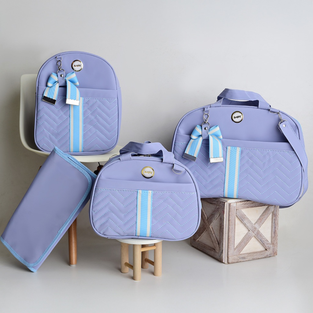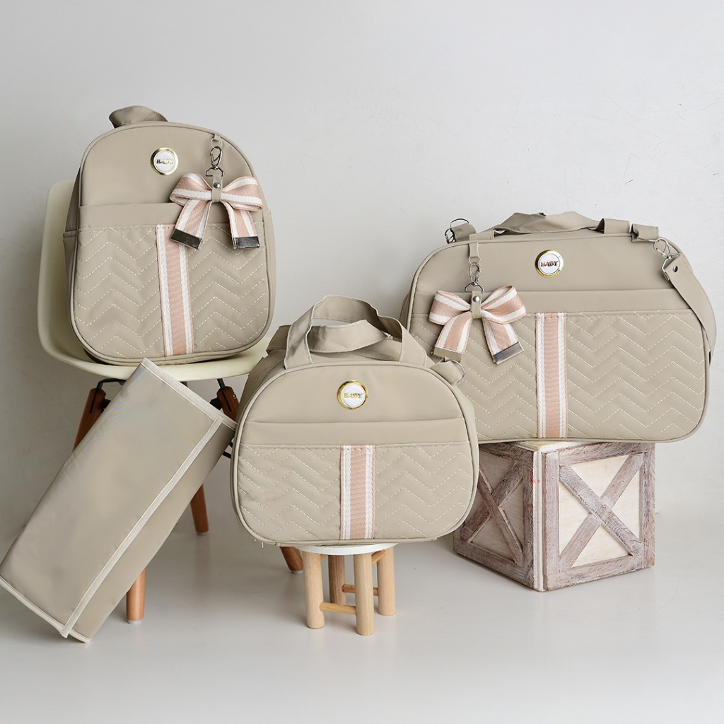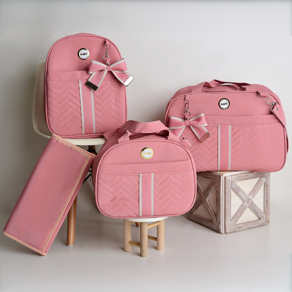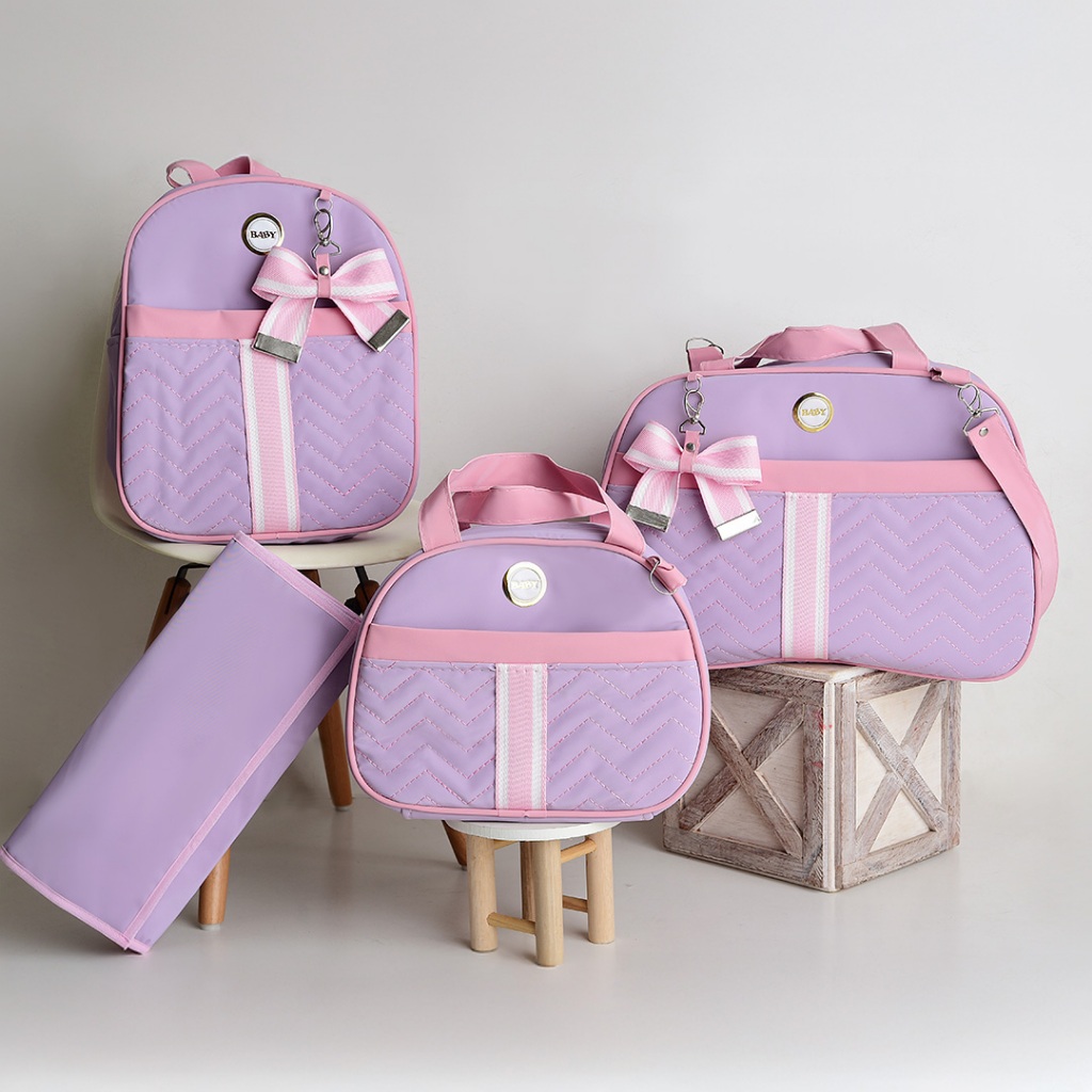 Kit Bolsa Maternidade Com Faixa e Laço 4 Peças Térmica e Impermeável Menina/Menino BUBBICO