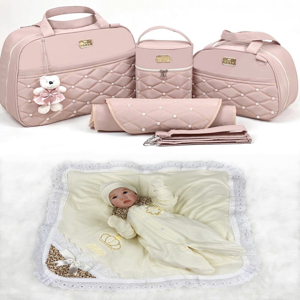 Kit Bolsas de Bebê Térmica Impermeável + Um Kit Saída de Maternidade 100% algodão