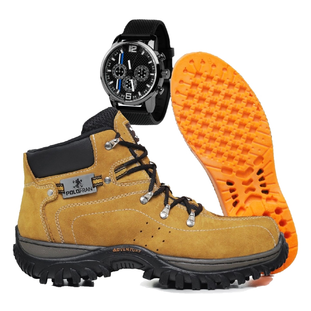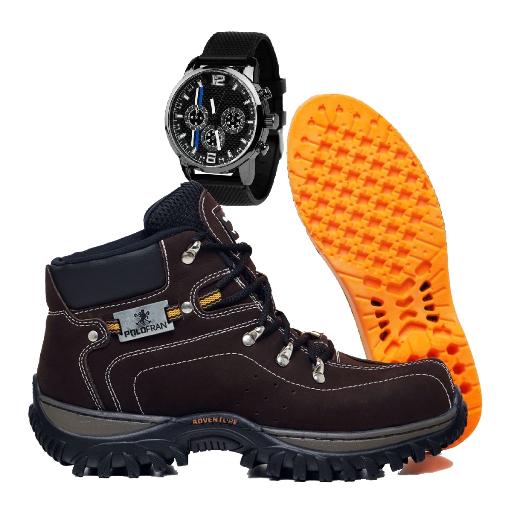 Kit Bota Adventure Botina Polo Fran Masculina Palmilha Gel + Relógio