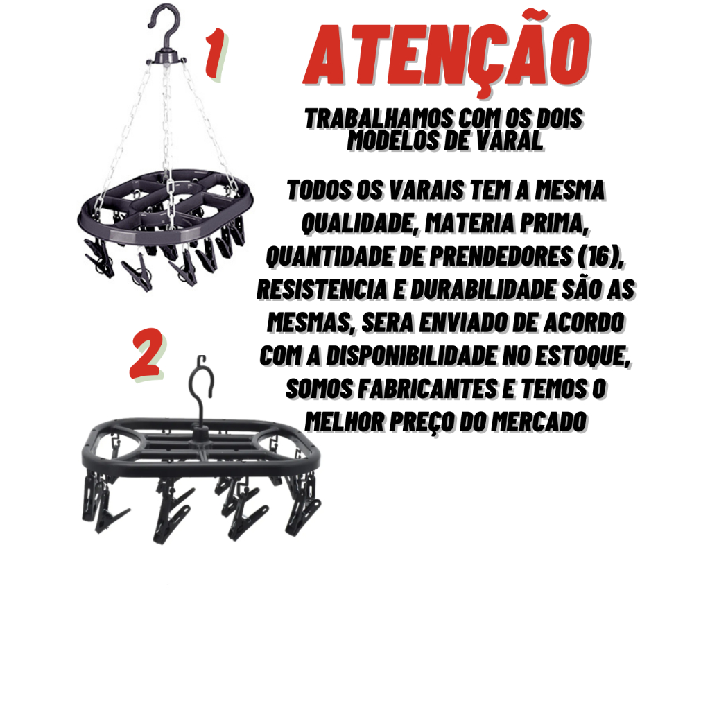 Kit C/02 Varal de Roupa Intima 16 prendedores cada, Calcinha, Meia, Cueca, lindas cores