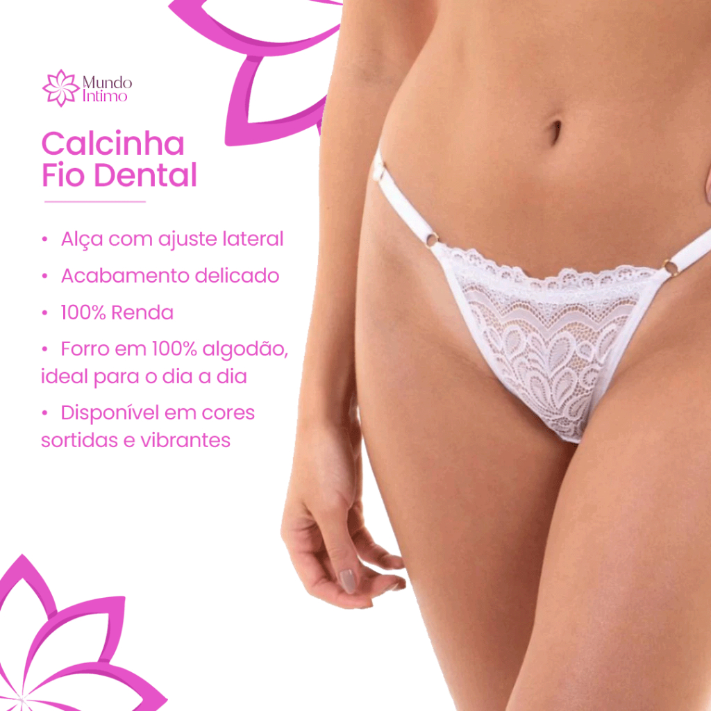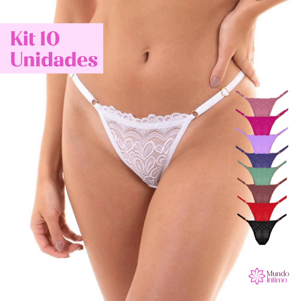 Kit C/10 Unidades de Calcinha Fio Dental Regulagem Lingerie Sexy 100% Renda