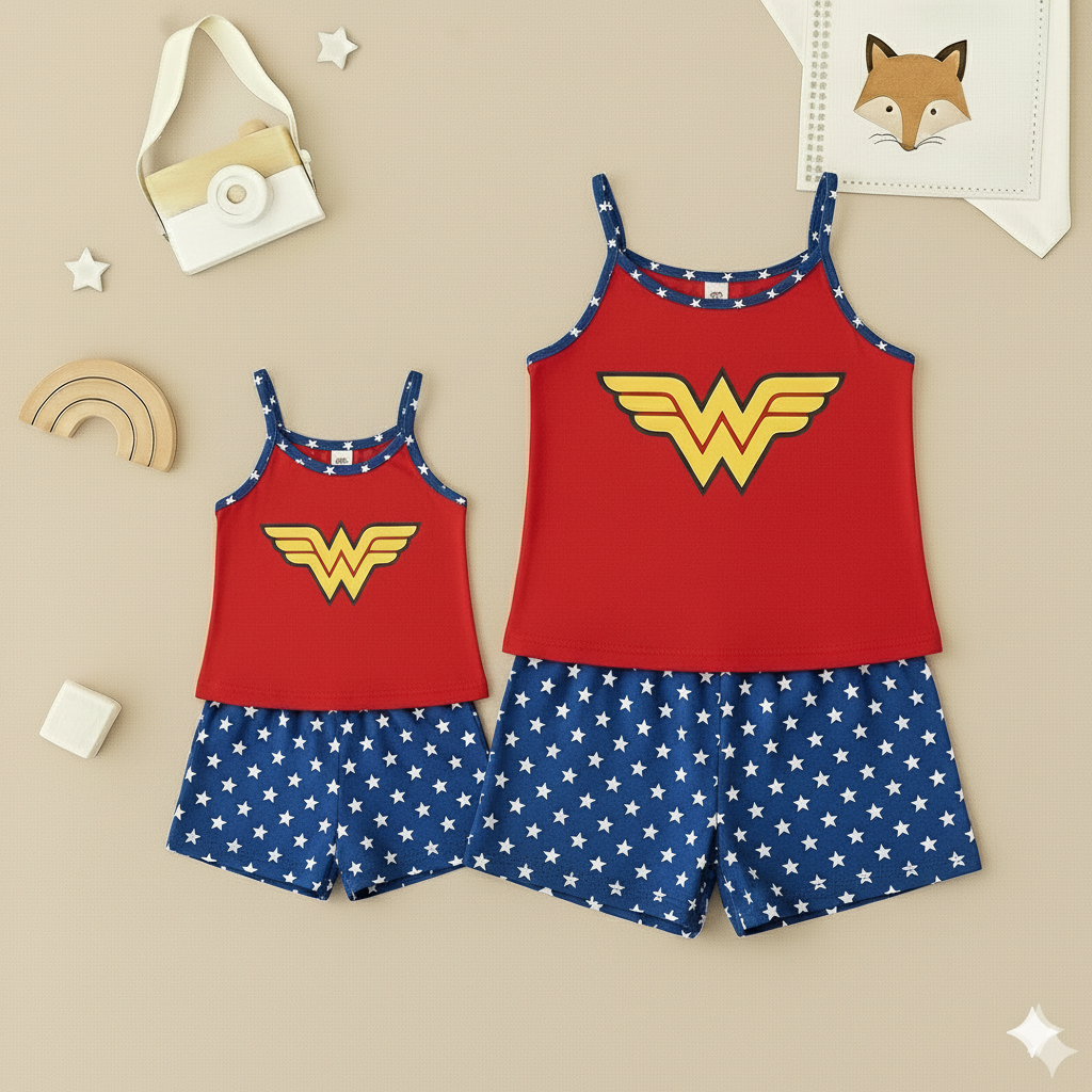 Kit C/2 Baby Doll Mãe e Filha Maravilha Malha Premium Pijama Curto Promoção Verão Alcinha Short