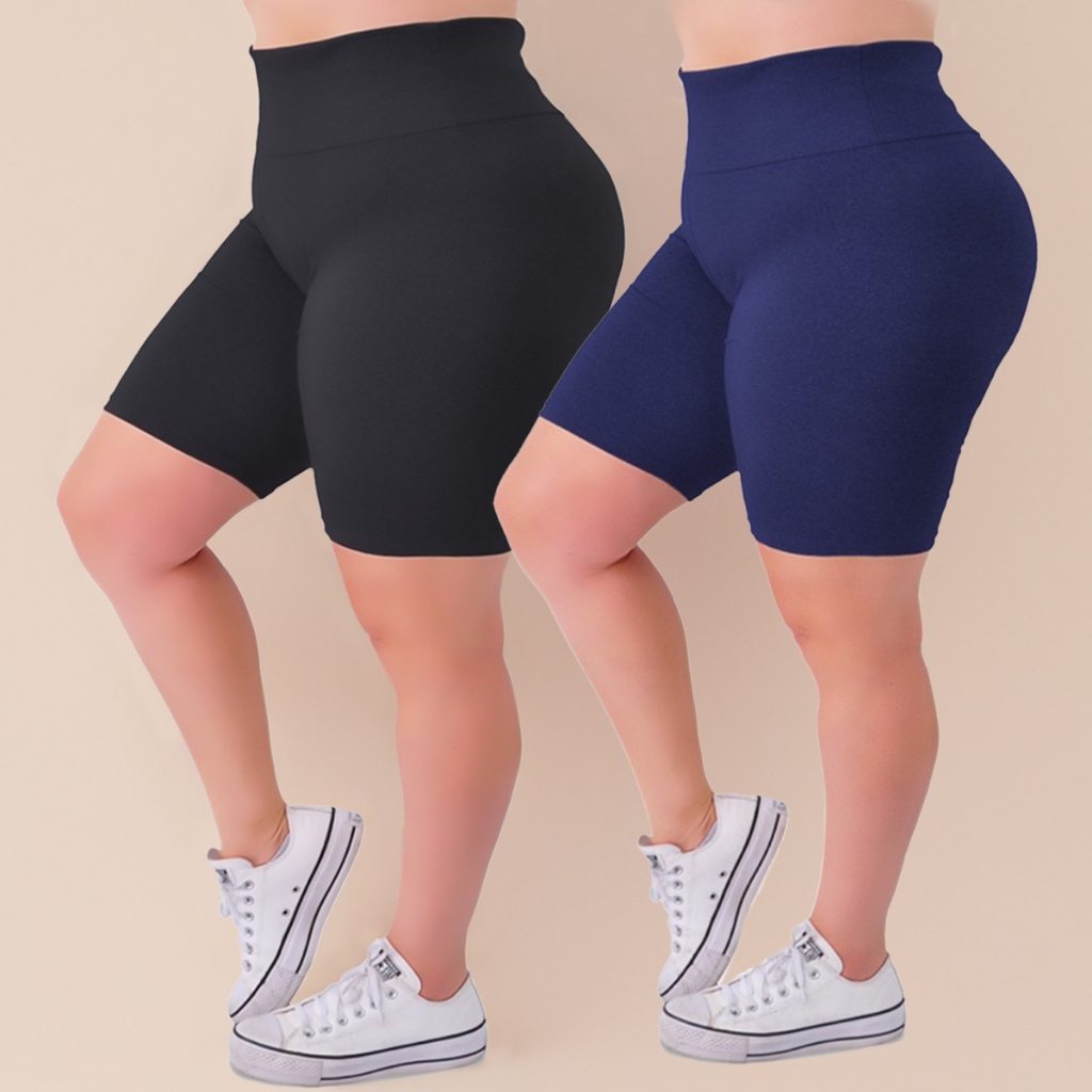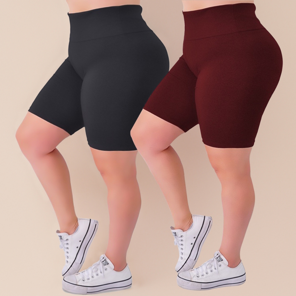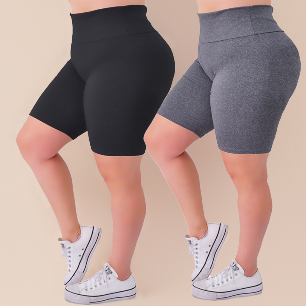 Kit C/2 Bermudas Plus Size Feminina Short Ciclista Roupa de Academia Fitness Bermuda Cós Alto