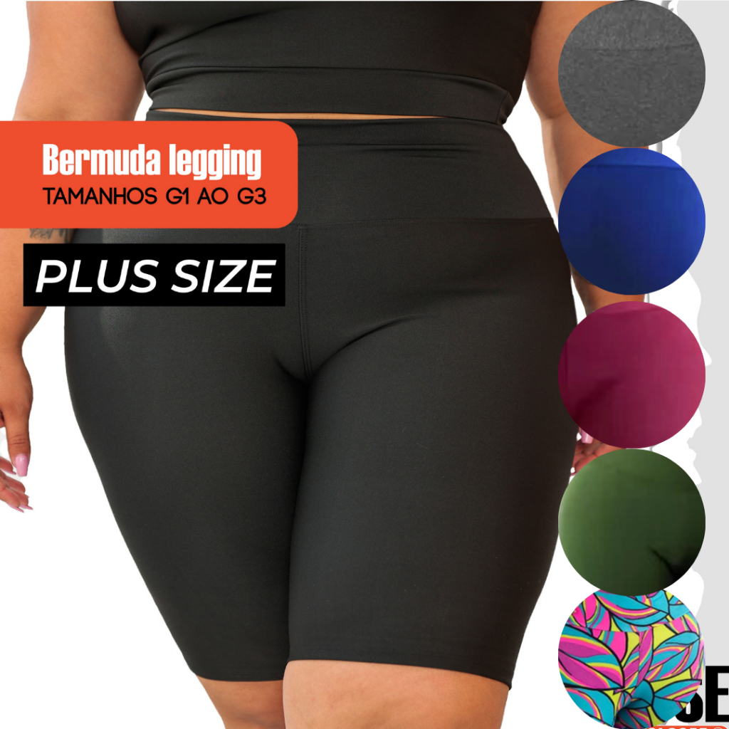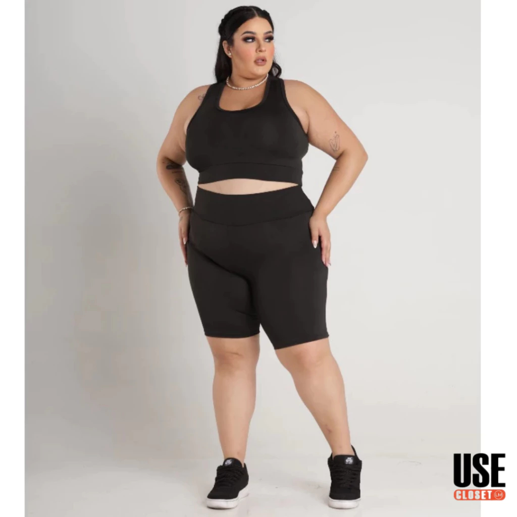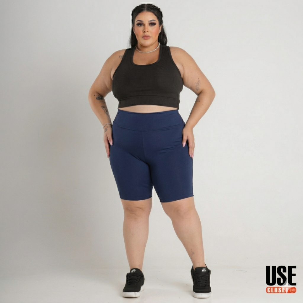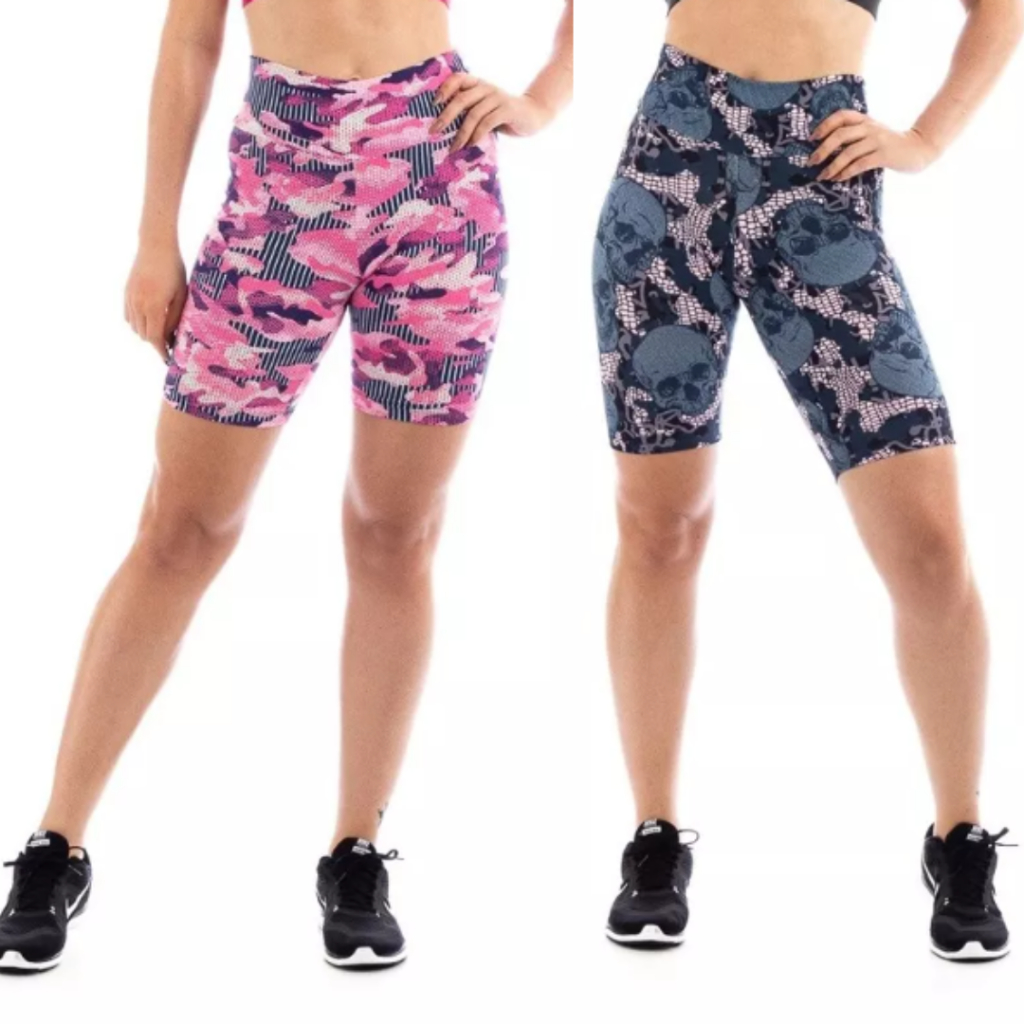 Kit C/2 Bermudas Plus Size Feminina Short Ciclista Roupa de Academia Fitness Bermuda Cós Alto