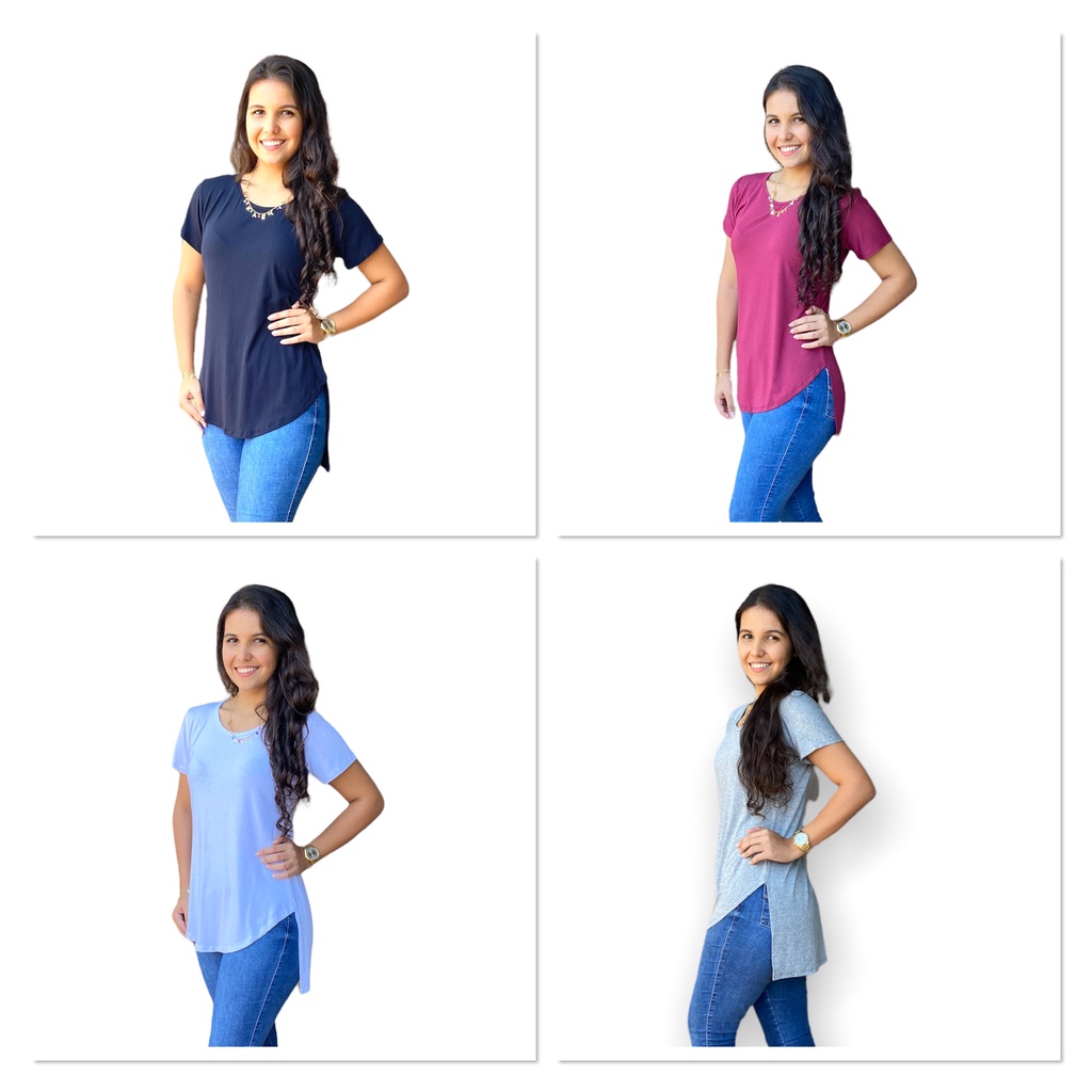 Kit C/ 4 Camiseta Blusa Basica Sobre Legging Fitness Tapa Bumbum RF:10