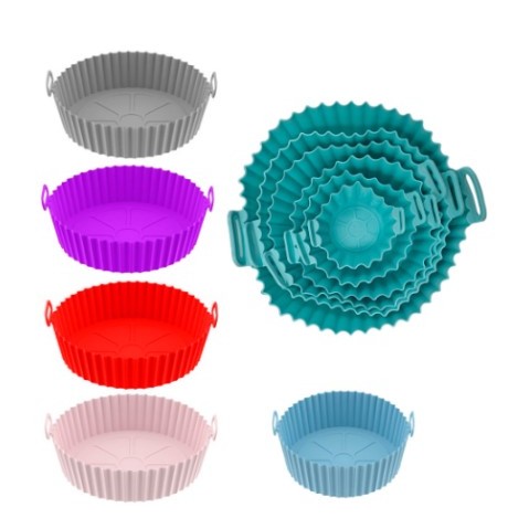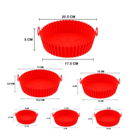 Kit C/6 Formas de Silicone Para Air fryer Tamanho variados Reutilizável Protetor Assadeira Com Alça