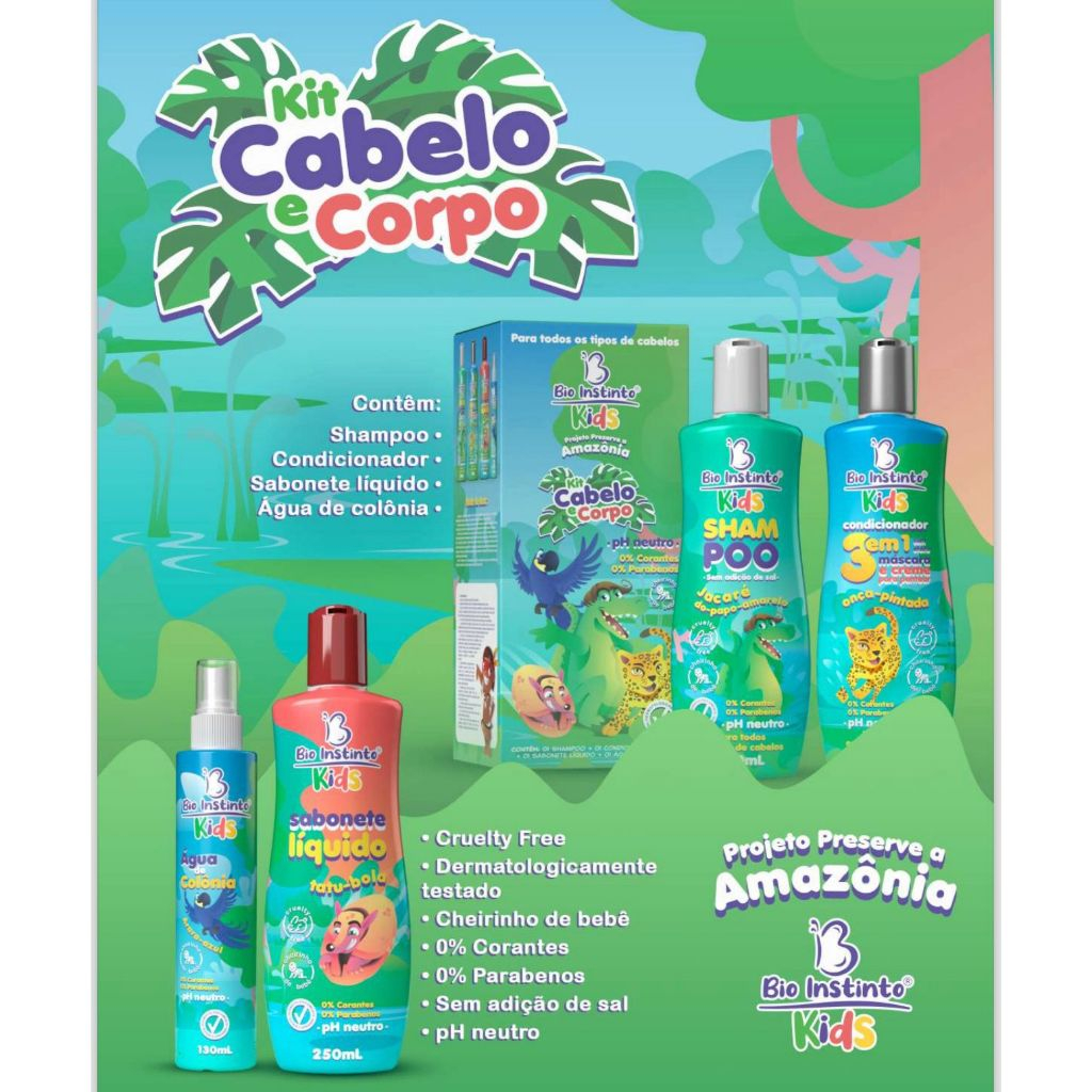 Kit Cabelo e Corpo Kids 4 Itens Bio Instinto