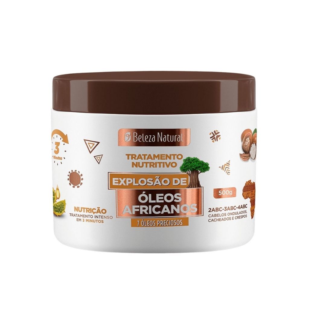 Kit Cachos Óleos Africanos – Shampoo, Condicionador, Pentear , Ativador, Máscara – Beleza Natural