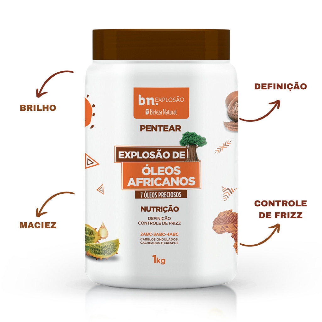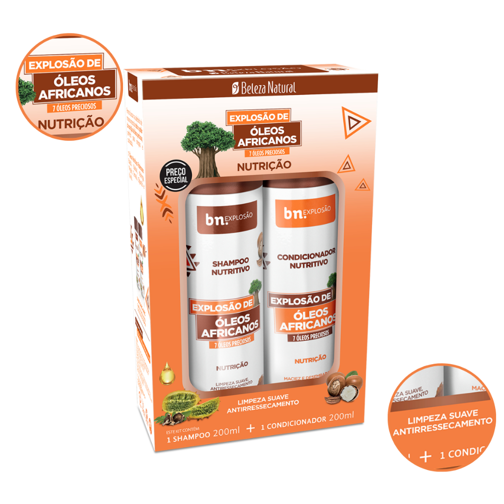 Kit Cachos Óleos Africanos – Shampoo, Condicionador, Pentear e Ativador de Cachos – Beleza Natural