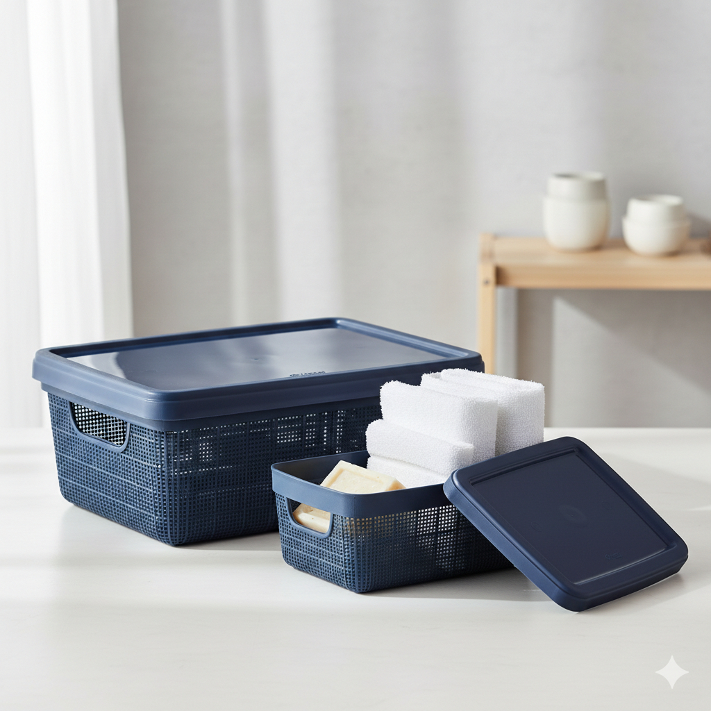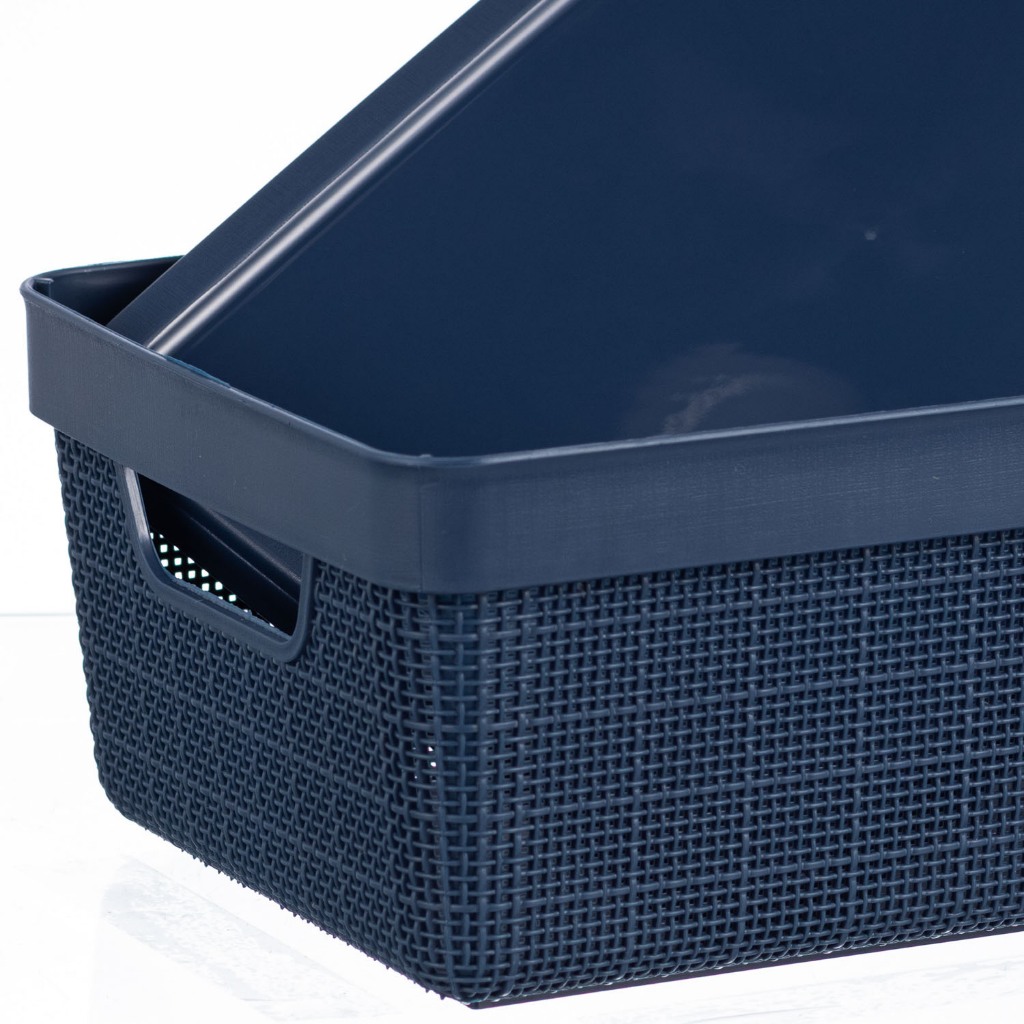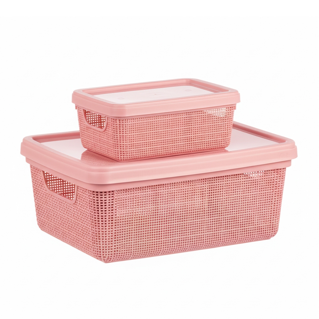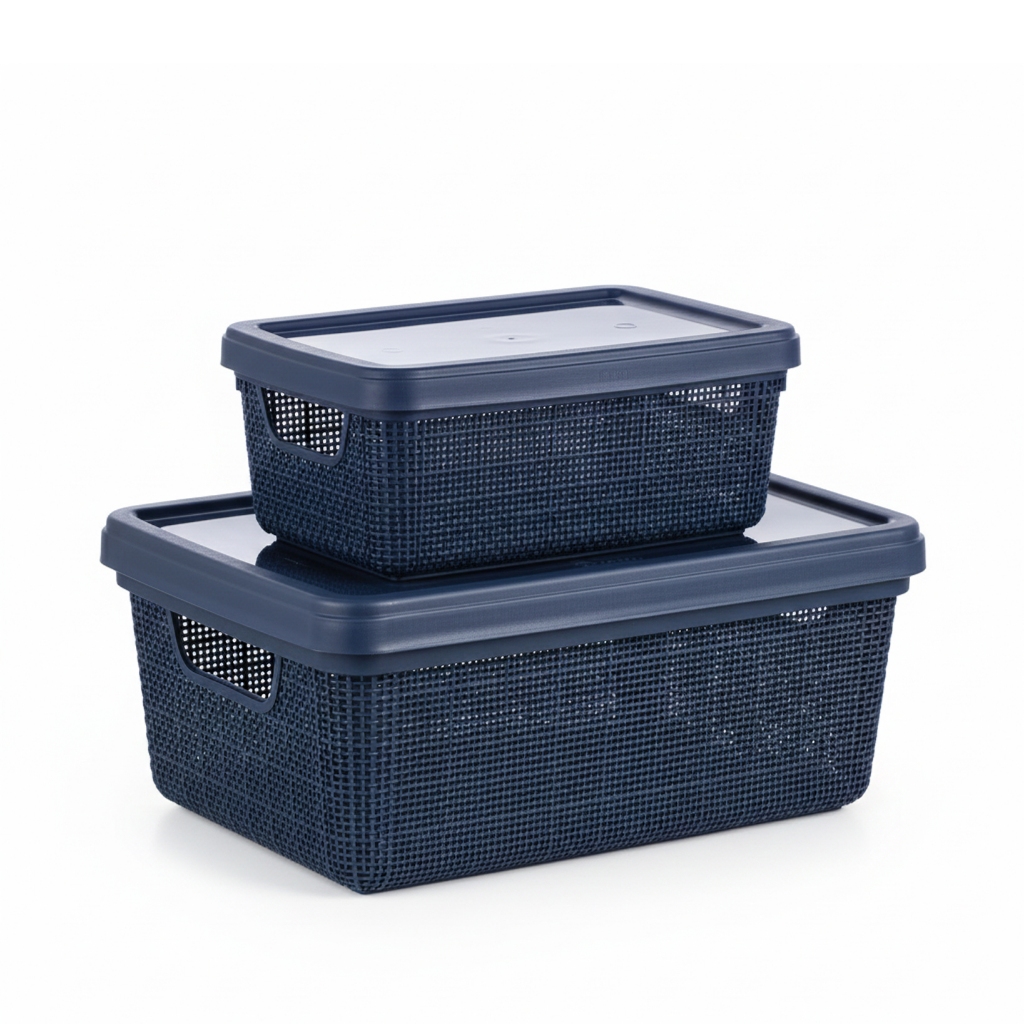 Kit Caixa Organizadora 1,8L + 5L com Tampa Plástico textura Juta cesta multiuso Para Organização