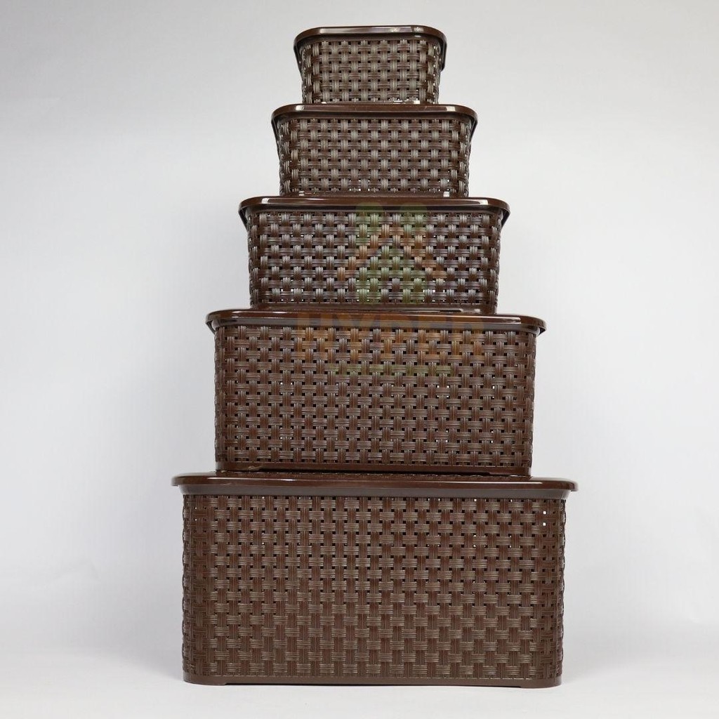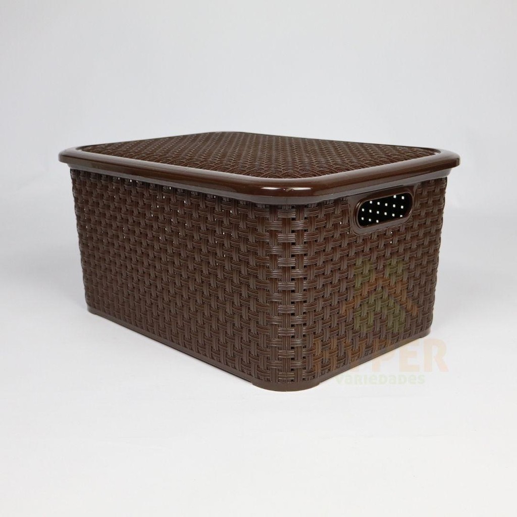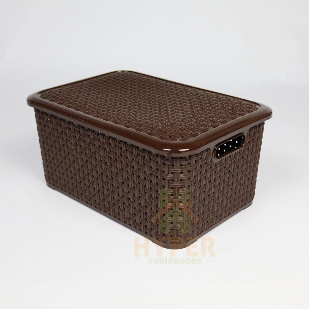 Kit Caixa Organizadora Rattan com Tampa Marrom Lig Brin 2.5L/4L/7.8L/16L/27L