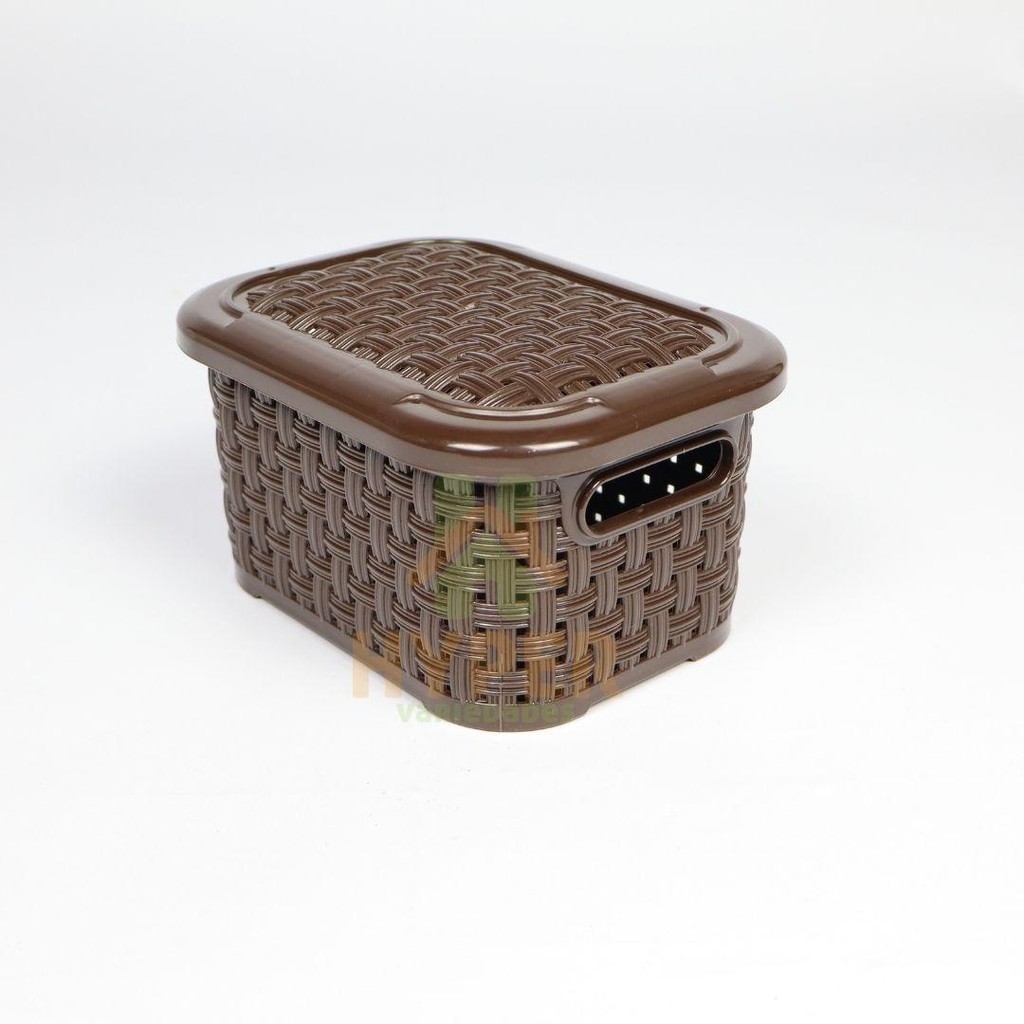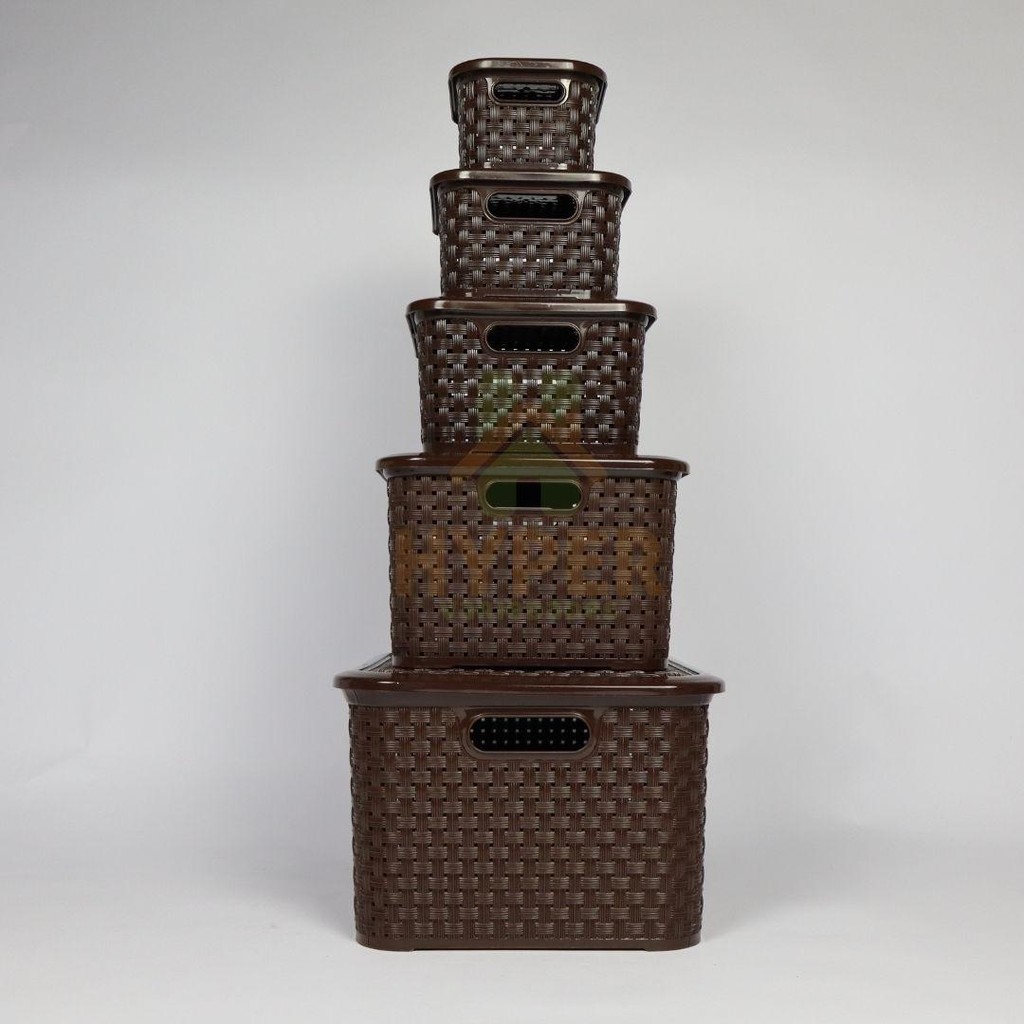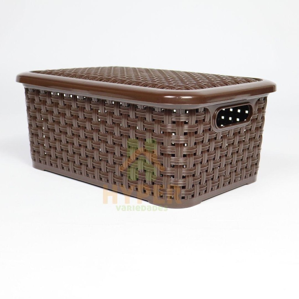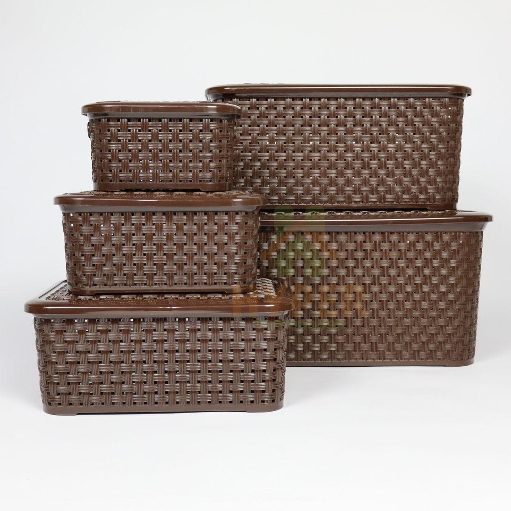 Kit Caixa Organizadora Rattan com Tampa Marrom Lig Brin 2.5L/4L/7.8L/16L/27L