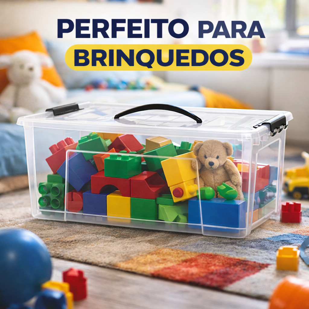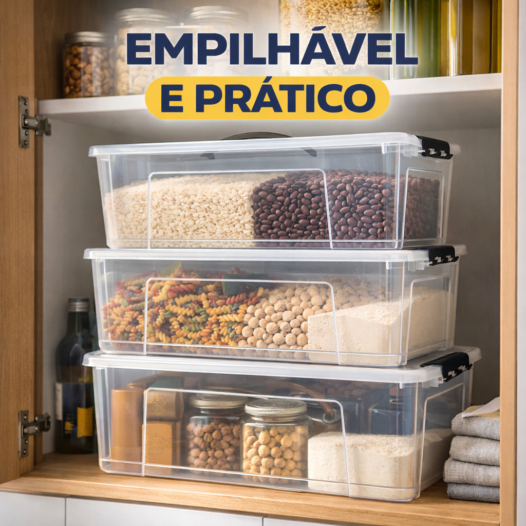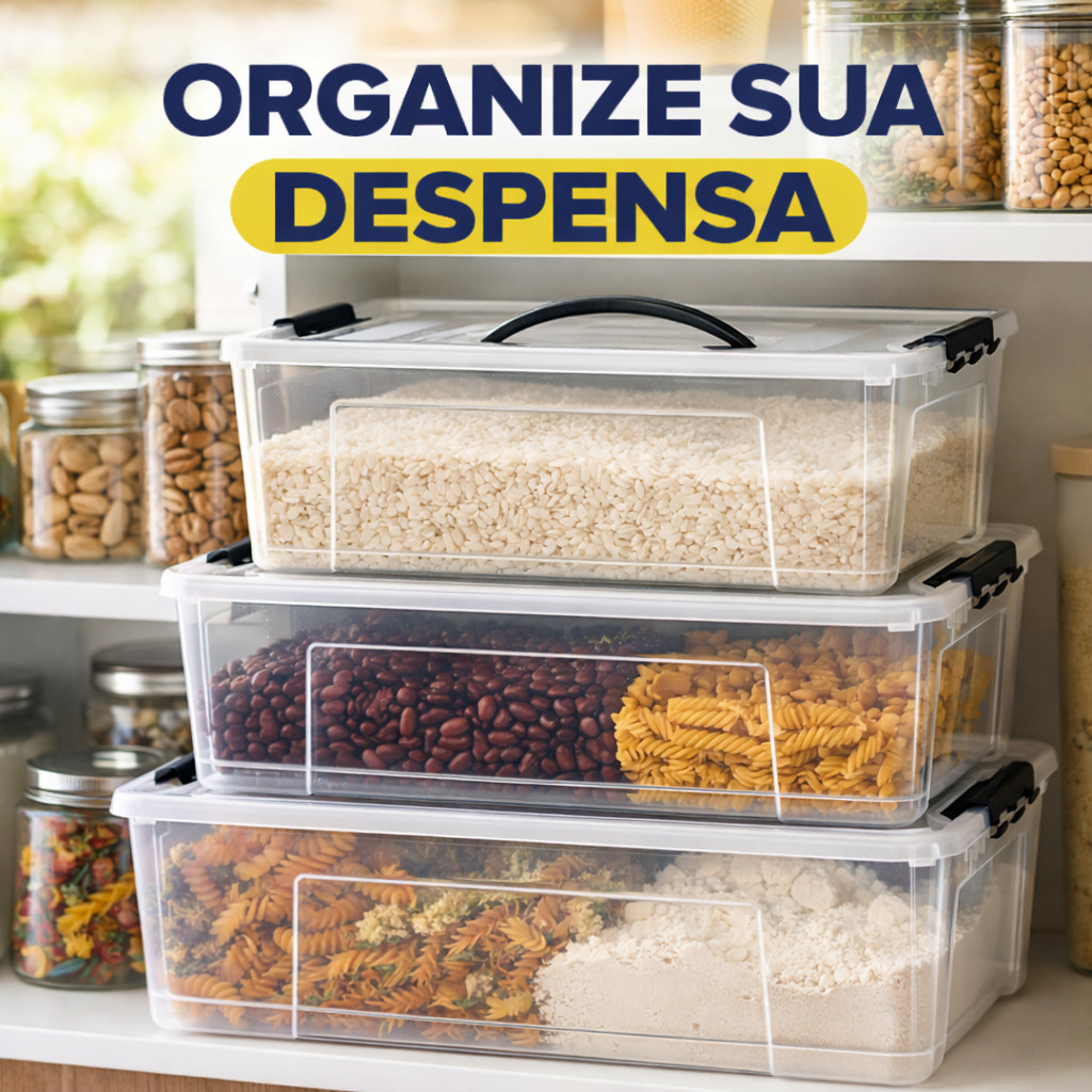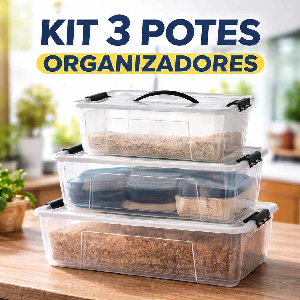 Kit Caixa Organizadora Transparente Com Tampa 3 Peças Guarda Tudo Empilhável