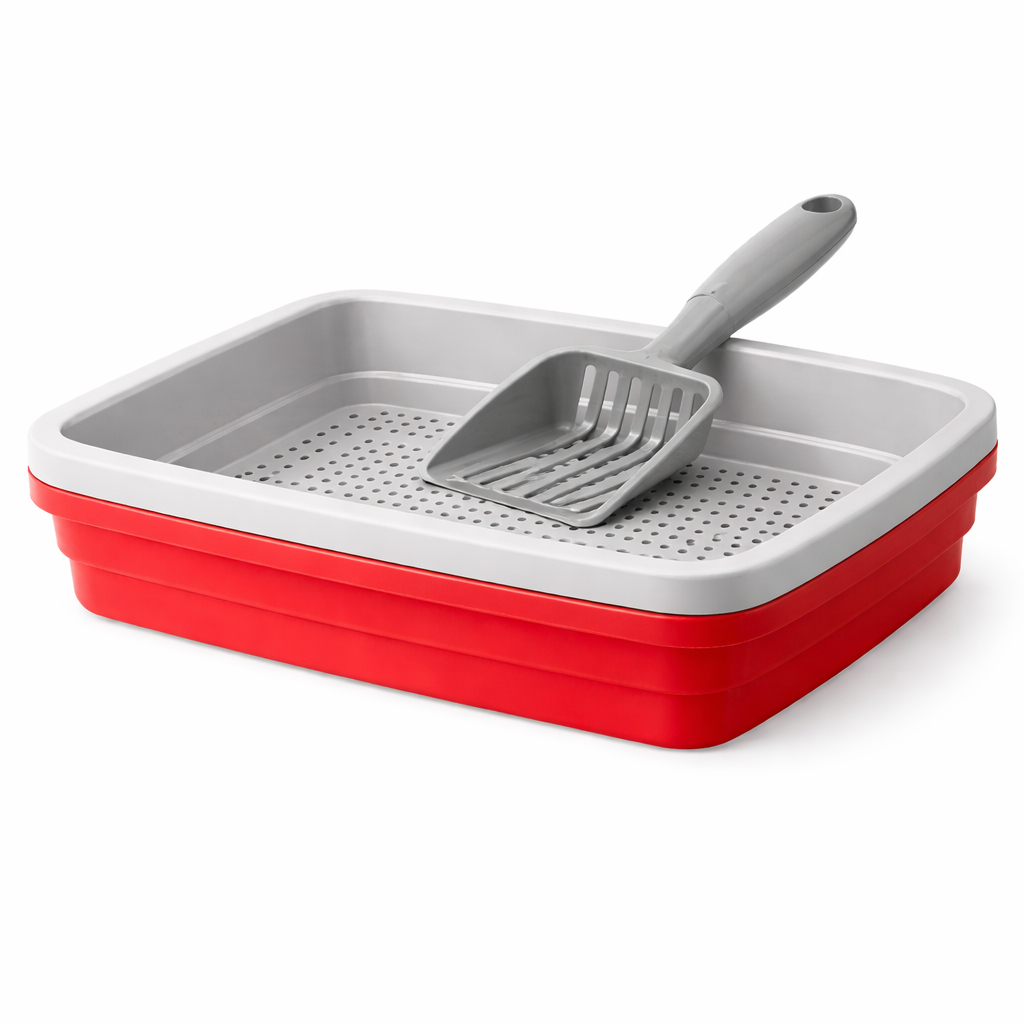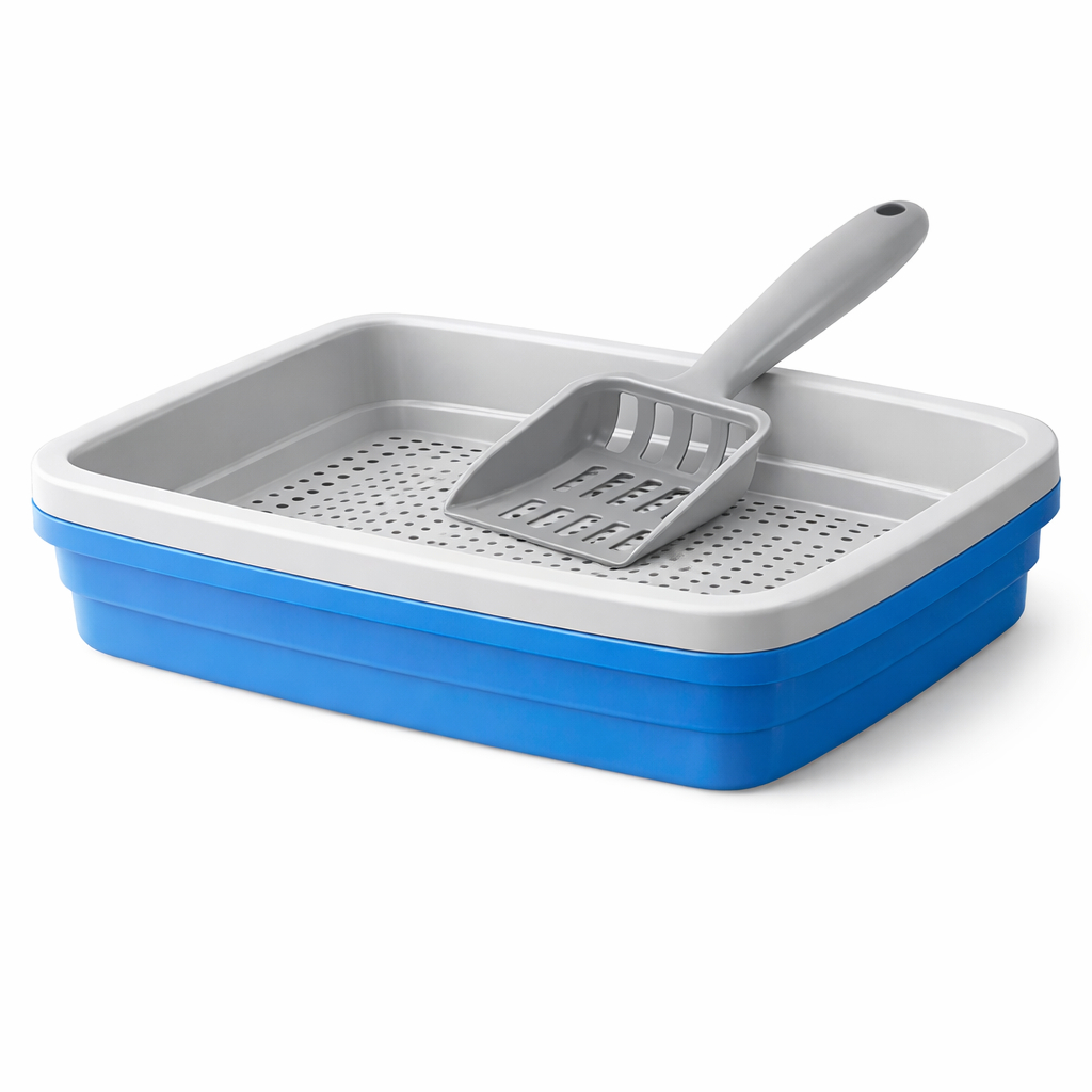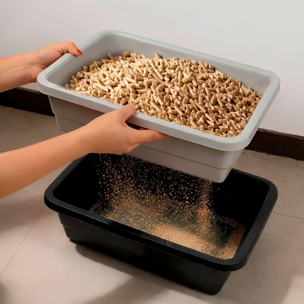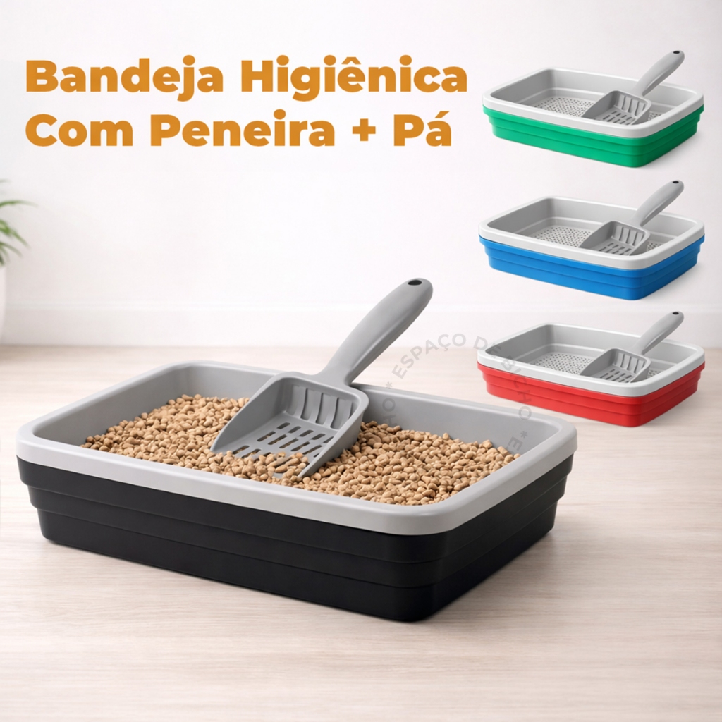 Kit Caixa de Areia Para Gatos Banheira Higiênica 2 Peças Com Bandeja Sanitária e Peneira + Pázinha