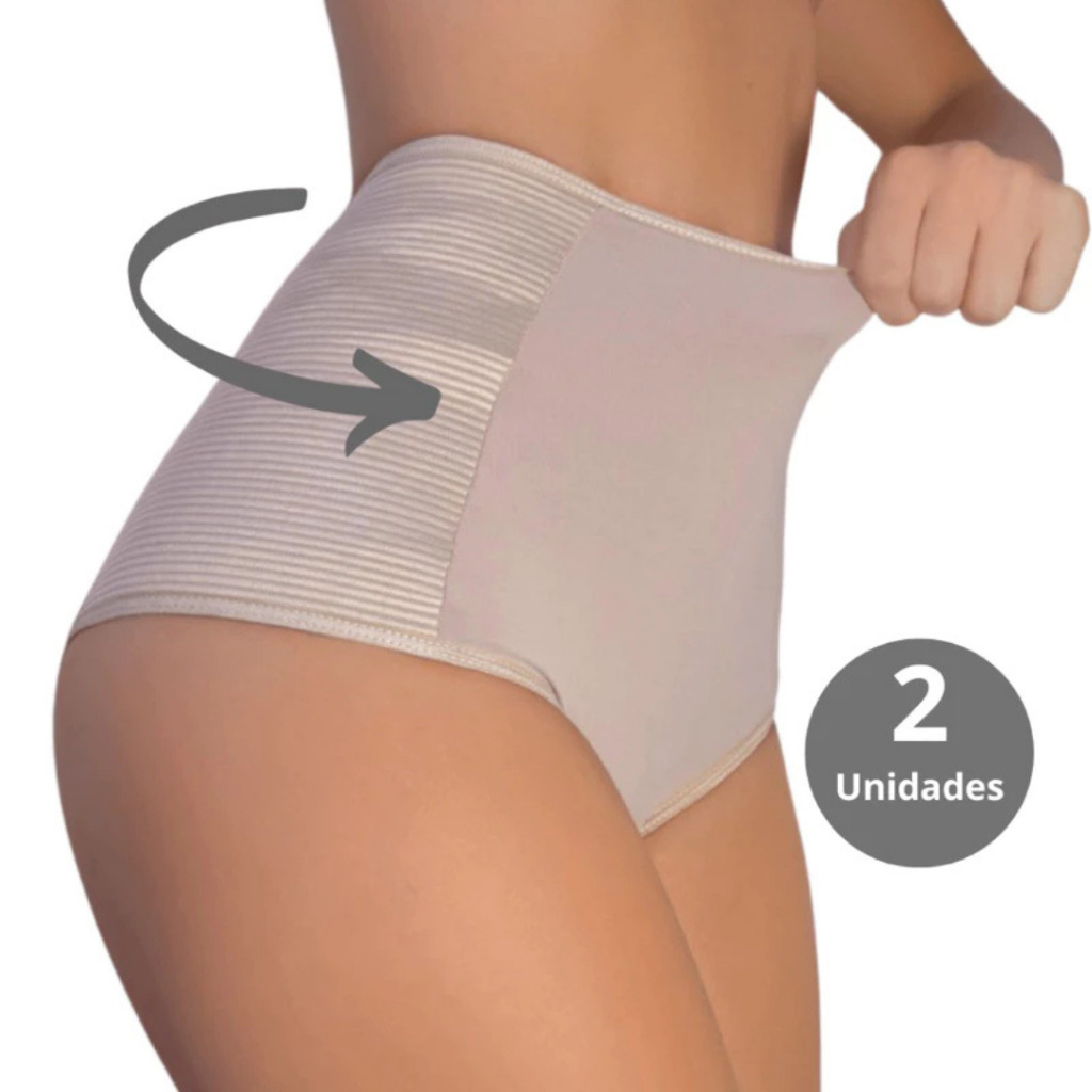 Kit Calcinhas Cinta Modeladora Compressão Cos Alto Segura Barriga Pos Parto Redutora de Medidas