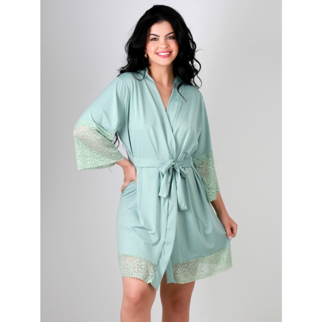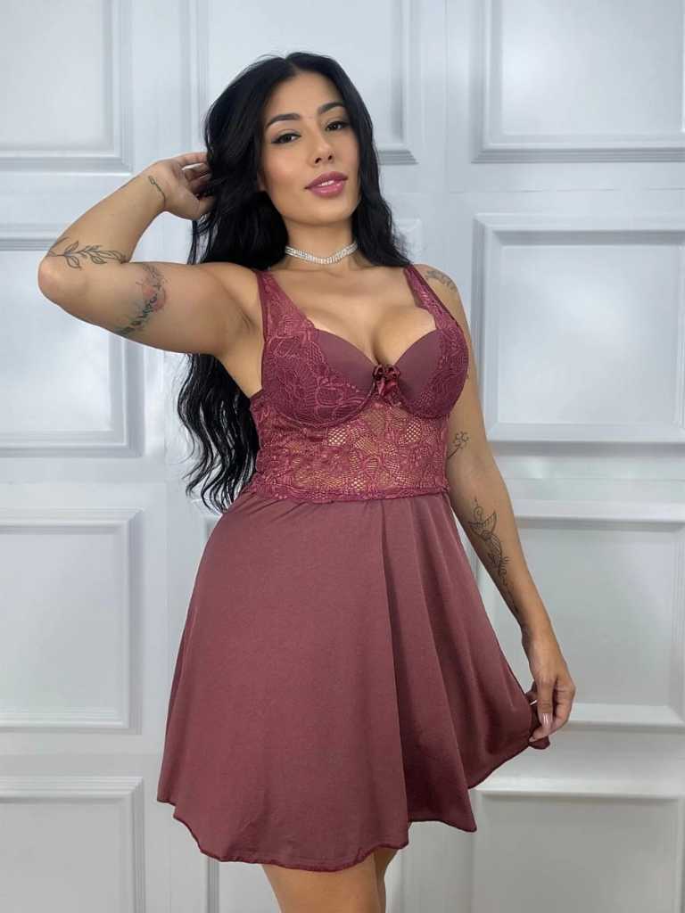 Kit Camisola com Bojo Alça Regulável + Robe Renda Luxo Lingerie Hobby Lua De Mel Noiva