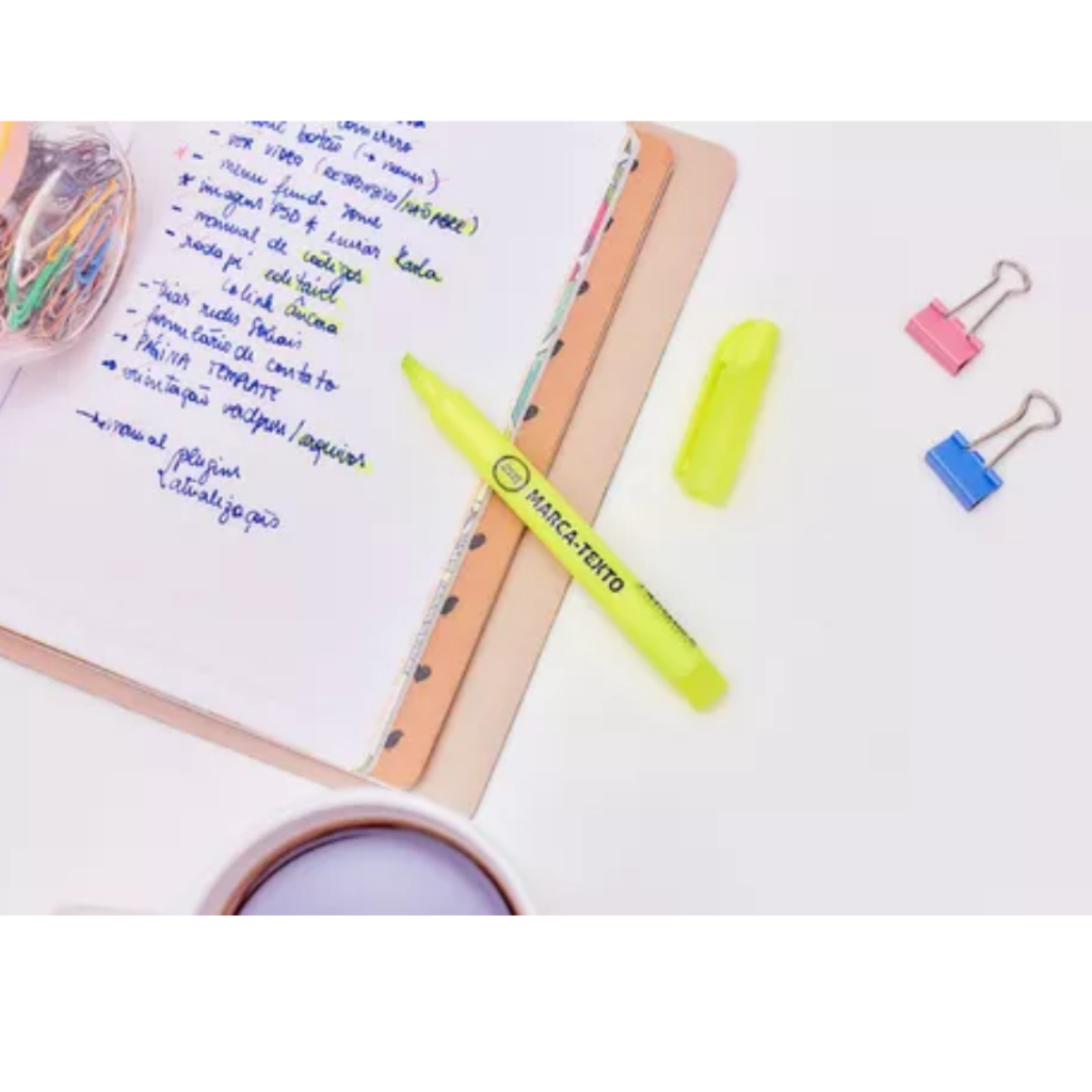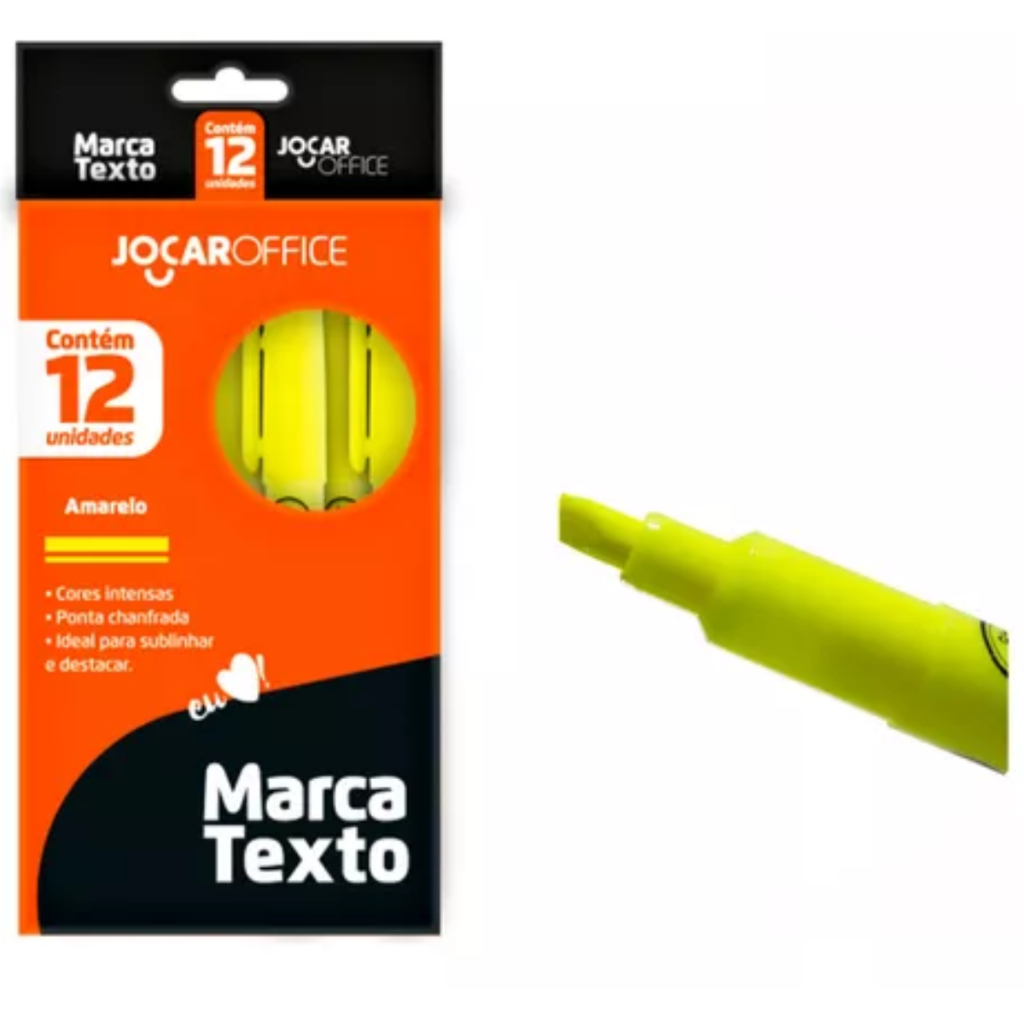Kit Caneta Marca Texto Amarelo Neon Caixa Com 12 Unidades