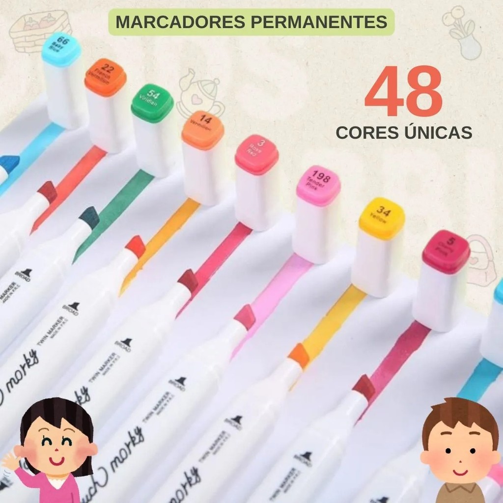 Kit Canetas Marcadoras Bobbie Goods com Ponta Dupla 48 Cores Sem Odor e Secagem Rápida